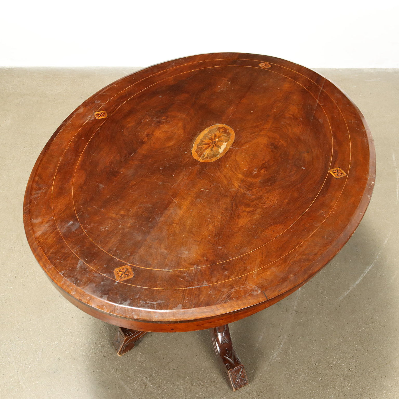 Antique Table Walnut Veneer Italy XIX Century