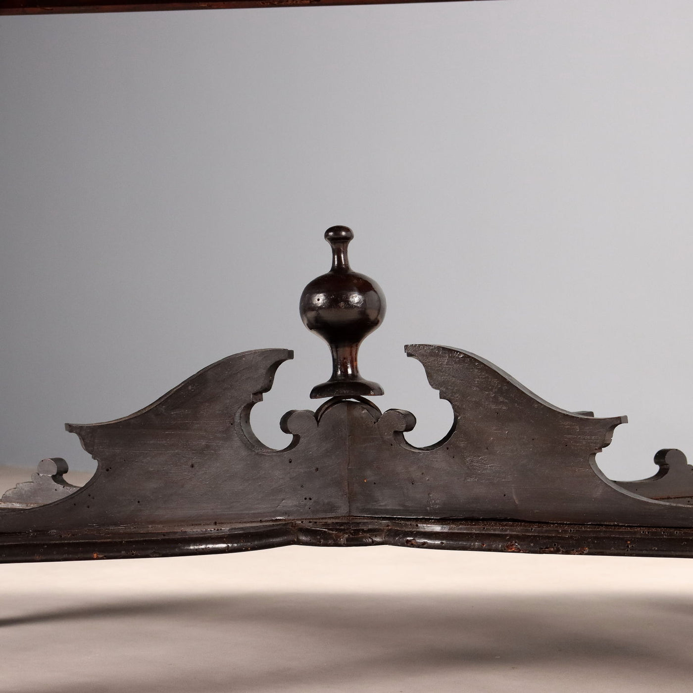 Antique Walnut Table with Leaf Carvings Ebonized Scagliola Top