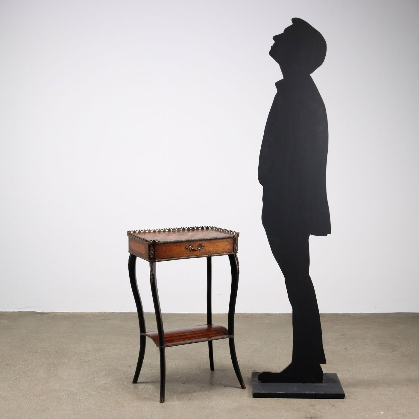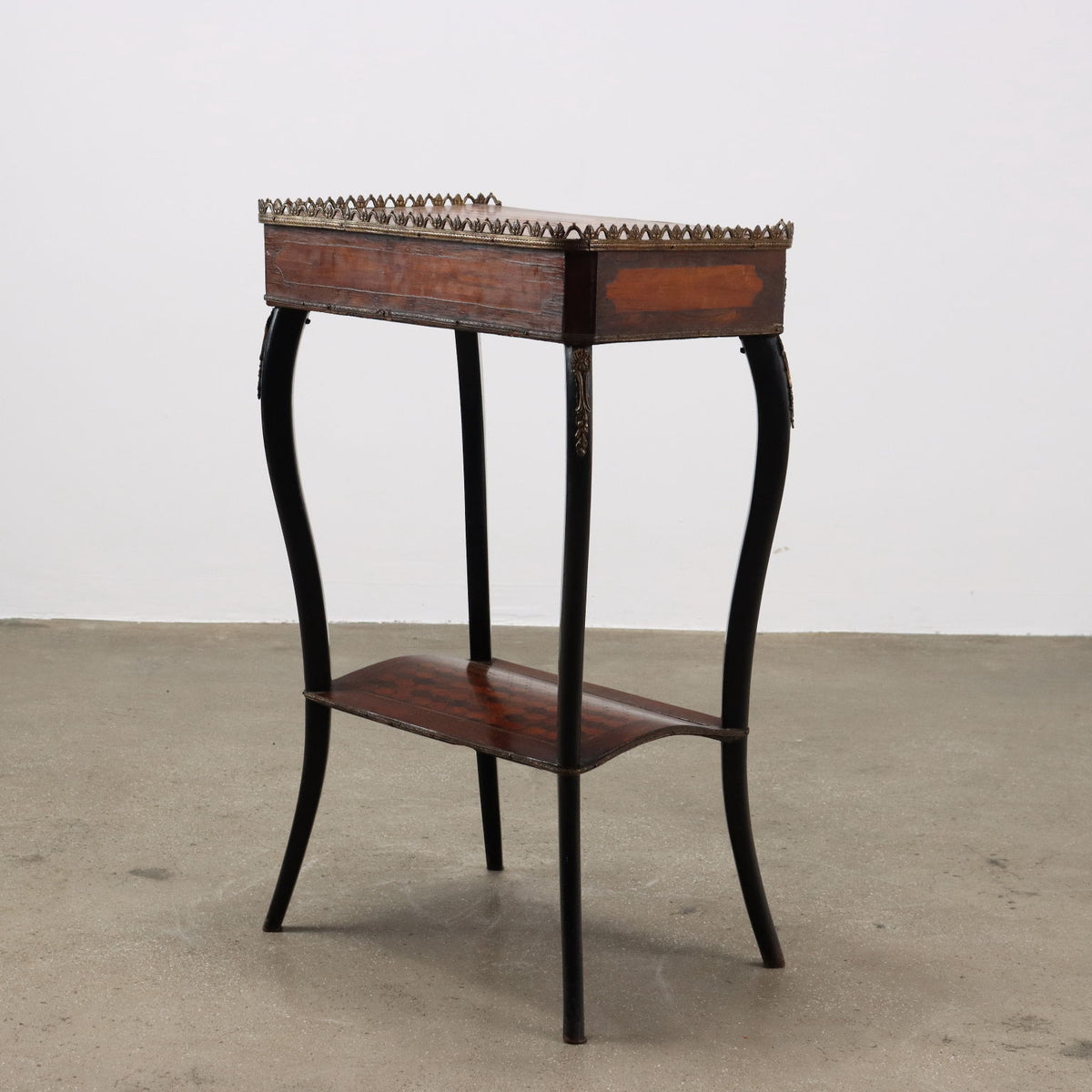 Poplar and beech coffee table, drawer under the top, ebonized curved legs, bois de rose inlaid tops, gilded metal moldings. Italy, 20th century. Coffee tables, ancient coffee table.