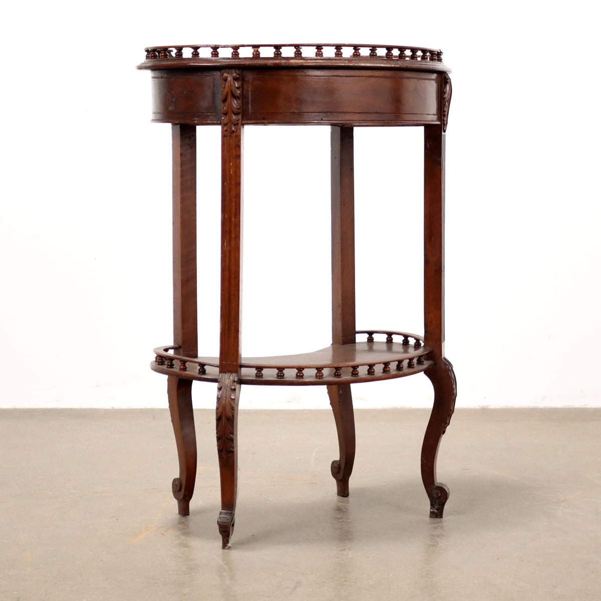 Walnut coffee table, drawer in the under-top band, carved legs with leaf carvings, curled feet. Shelves embellished with balusters. Italy, 19th century. Coffee tables, ancient coffee table.