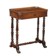 Walnut work table, drawer in the band under the top, turned legs resting on wavy feet joined by a crosspiece. Italy, late 19th century. Coffee tables, ancient coffee table.