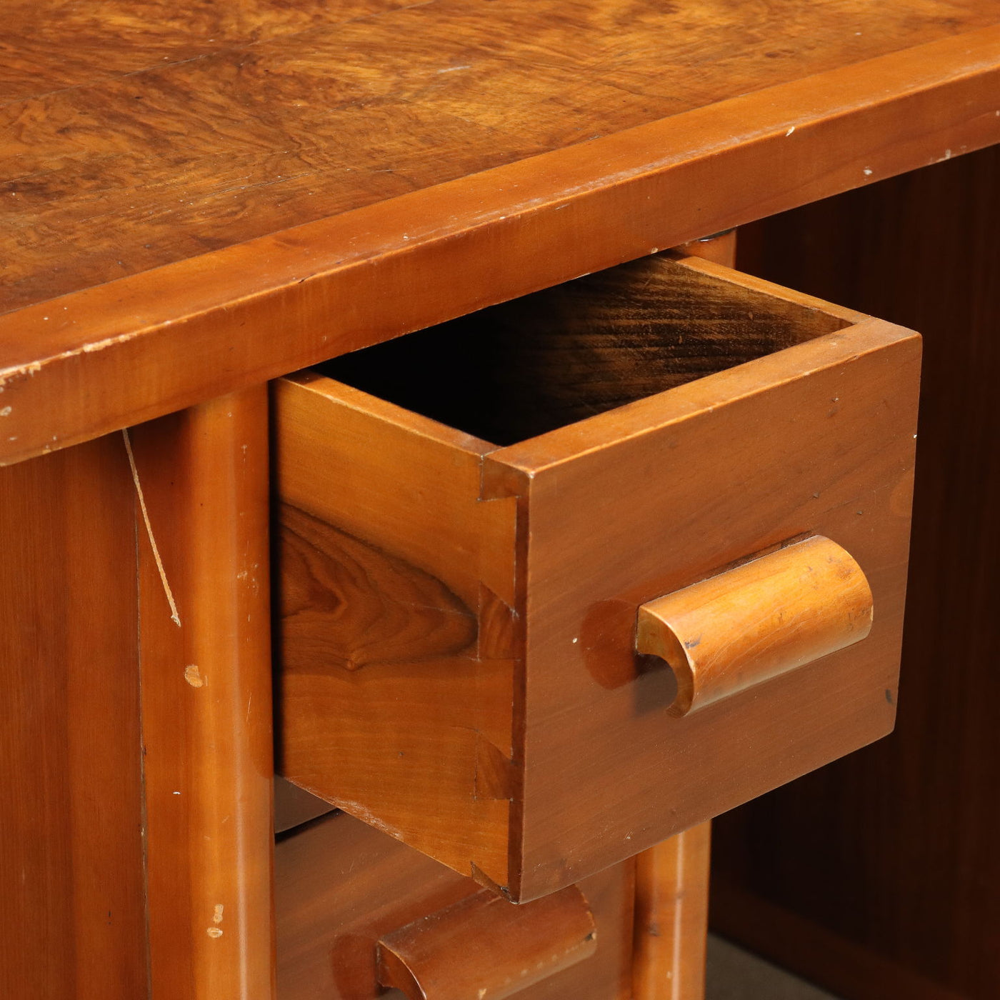 Vintage 1940s Desk with Side Drawers Walnut Italy