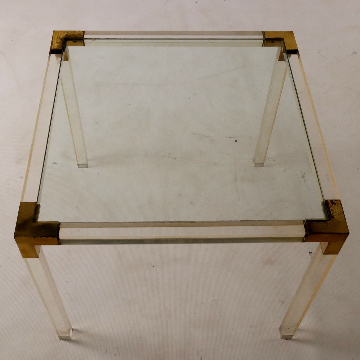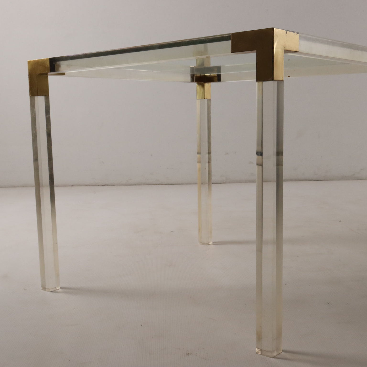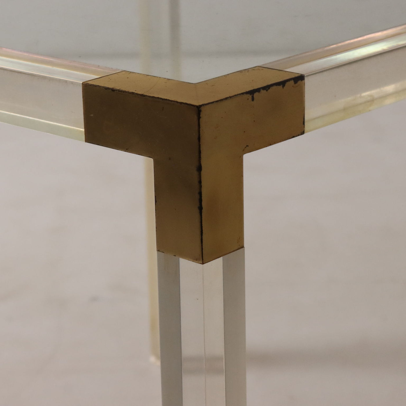 Vintage coffee table with plexiglass and brass structure and glass top. Vintage Coffee table, smoker's coffee table, 1970s coffee table, 1960s coffee table, 1950s coffee table, 1940s coffee table, 1930s coffee table, design coffee table.