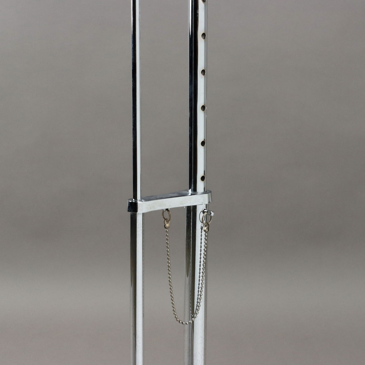Height-adjustable coffee table, in chromed metal and glass. Vintage Coffee table, smoker's coffee table, 1970s coffee table, 1960s coffee table, 1950s coffee table, 1940s coffee table, 1930s coffee table, design coffee table.