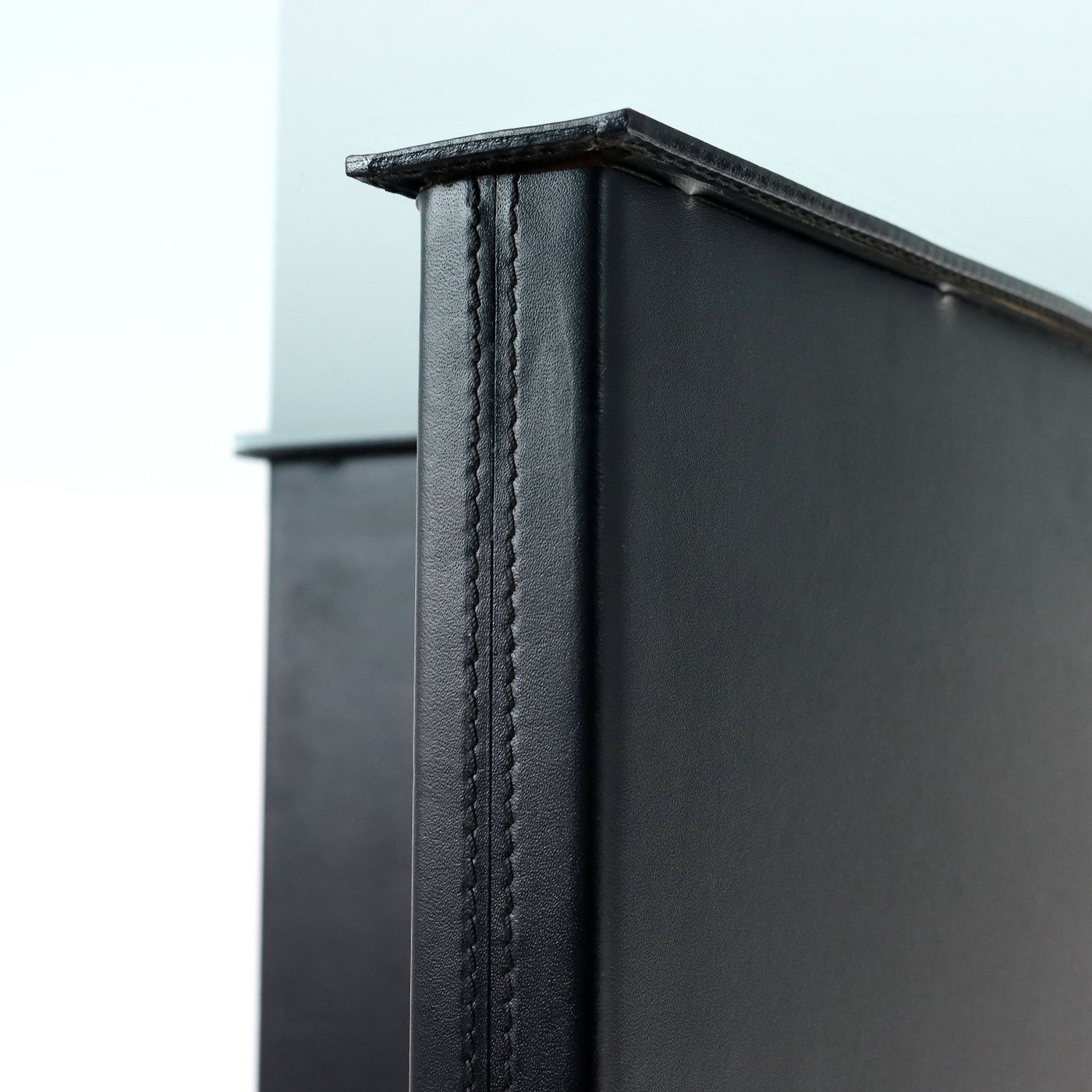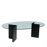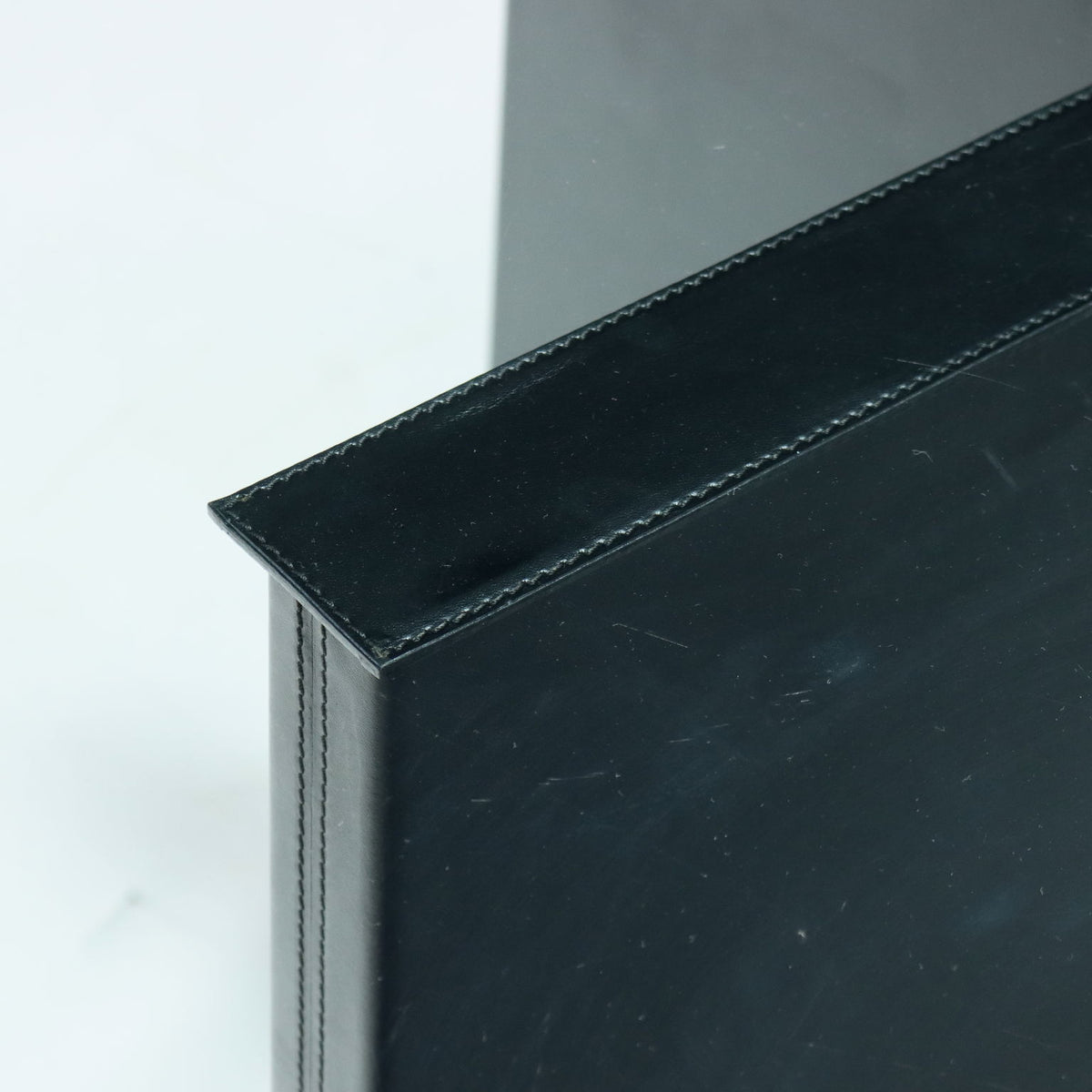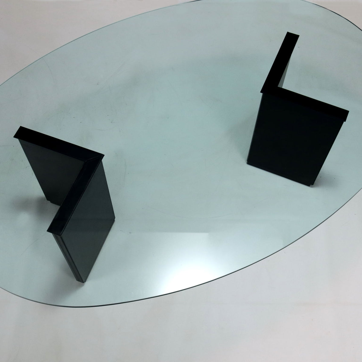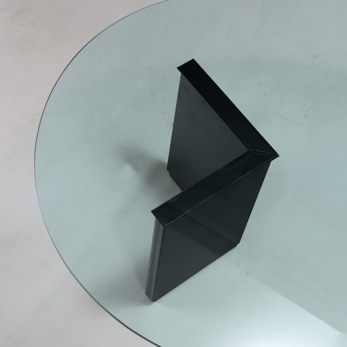 Elliptical table, metal base covered in leather, transparent glass top. Vintage Tables, vintage table, 1970s table, 1940s table, 1930s table, 1960s table, 1950s table, design table, desk, writing desk.
