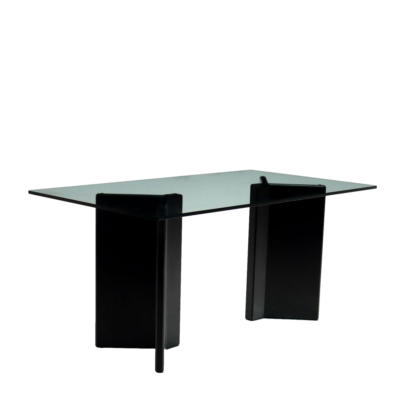 Vintage Table Glass Top Enamelled Wood Italy 1980s