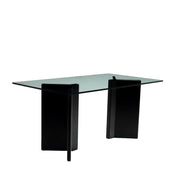 Vintage table with glass top and black enamelled wooden legs. Vintage Tables, vintage table, 1970s table, 1940s table, 1930s table, 1960s table, 1950s table, design table, desk, writing desk.