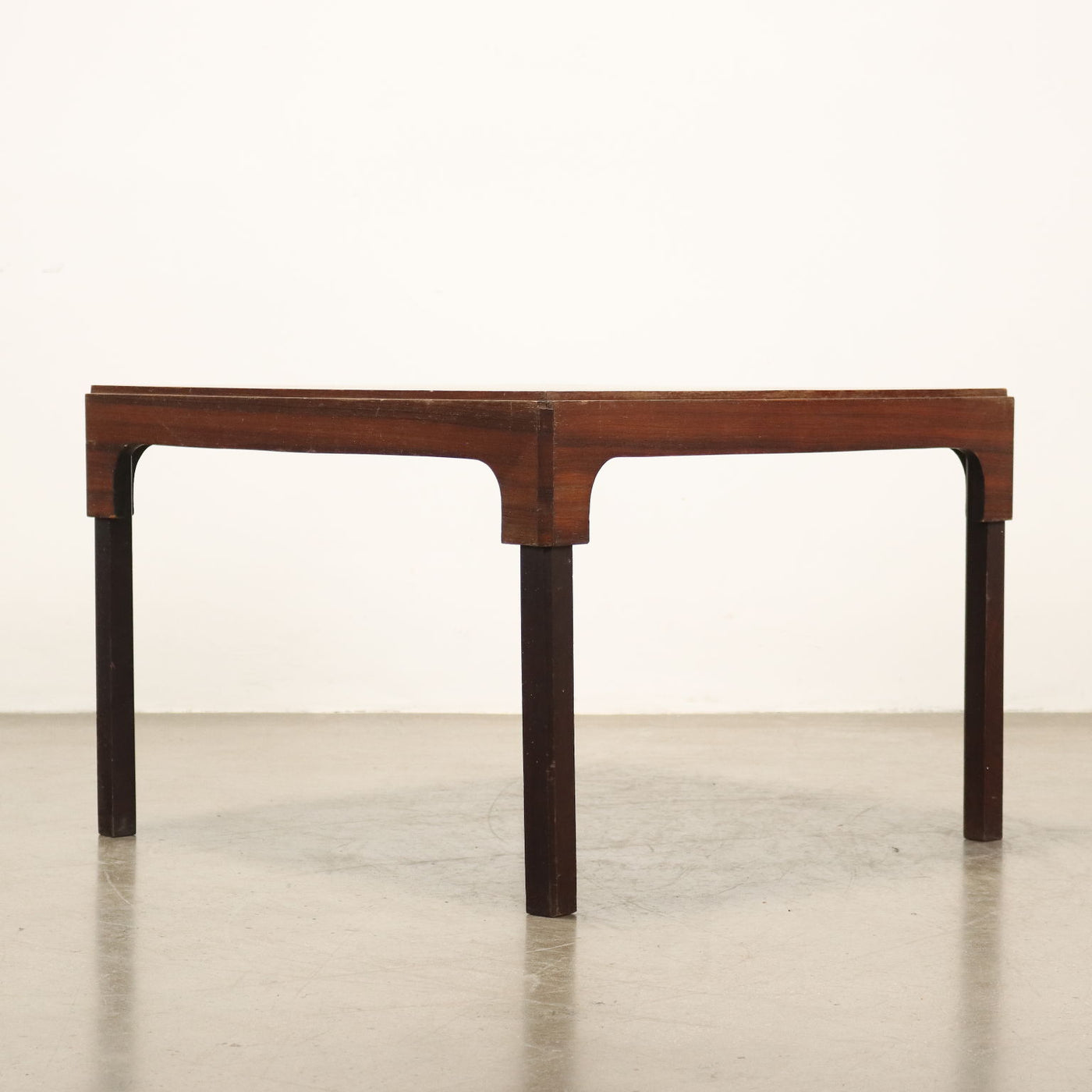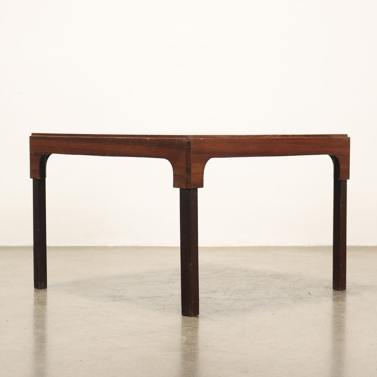 Vintage Italian-made coffee table with square top made of wood with exotic wood veneer. Vintage Coffee table, smoker's coffee table, 1970s coffee table, 1960s coffee table, 1950s coffee table, 1940s coffee table, 1930s coffee table, design coffee table.