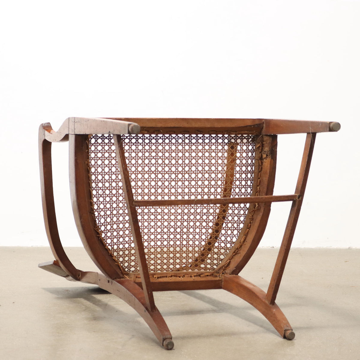Group composed of two chairs and two armchairs in walnut, open backrest, truncated pyramidal legs, seat in Vienna straw. Italy, late 17th, early 19th century. Chairs, ancient chair, office chair, stool.