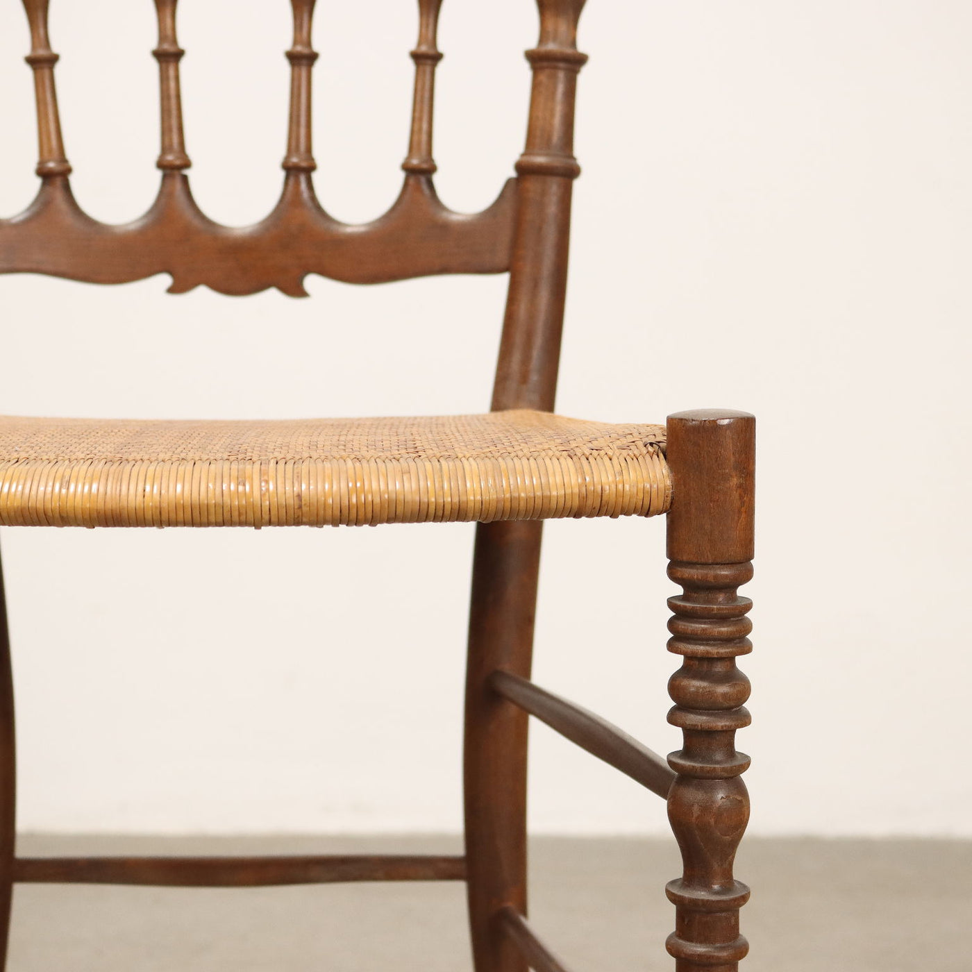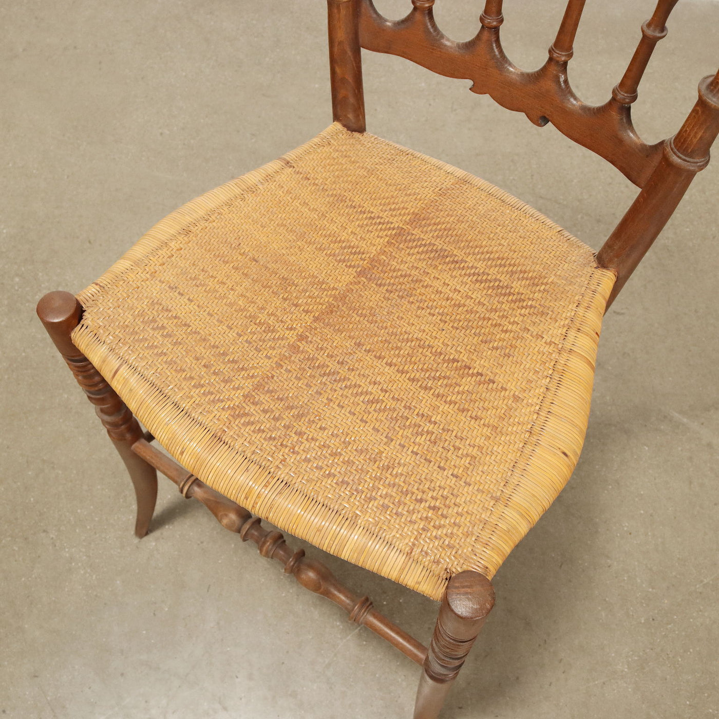 Five 'chiavarine' chairs from the end of the 19th century. Made of maple, super light, they have the typical turned workmanship on the legs and the rods of the backrest. Cane seat. These chairs were very successful in the 19th century for their design and lightness, and were exported all over the world; not only very popular, but considered elegant, they can be found in all European palaces. Chairs, ancient chair, office chair, stool.