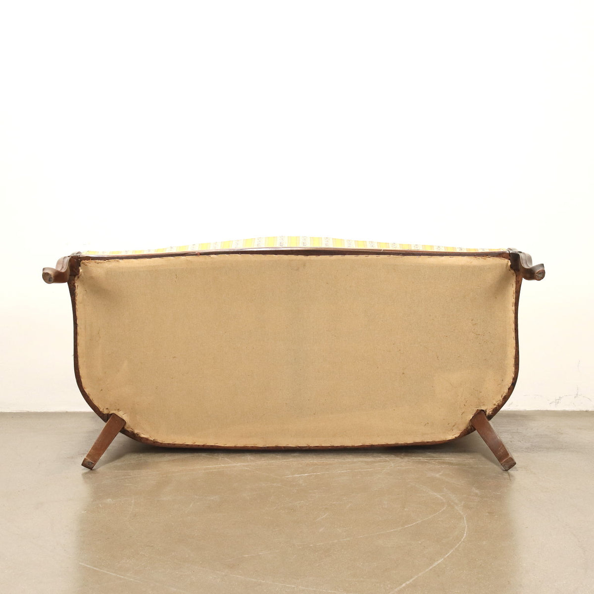 Louis Philippe sofa in walnut, curved arms and legs, enveloping back and padded seat. Italy, mid-19th century. sofa, duchesse brisée, daybed.