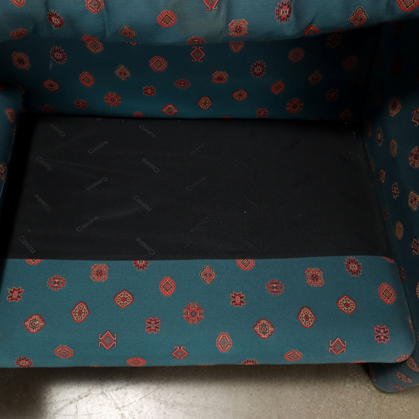 Sofa with foam padding and fabric upholstery. Backrest with fold-down headrest 'to allow use in the low or high version, with instant convertibility' (from the volume Cassina - Portraits, 1994). small soda, vintage small sofa, 1980s sofa, 1970s sofa, 1960s sofa, 1950s sofa, 1940s sofa, vintage sofa, design sofa.
