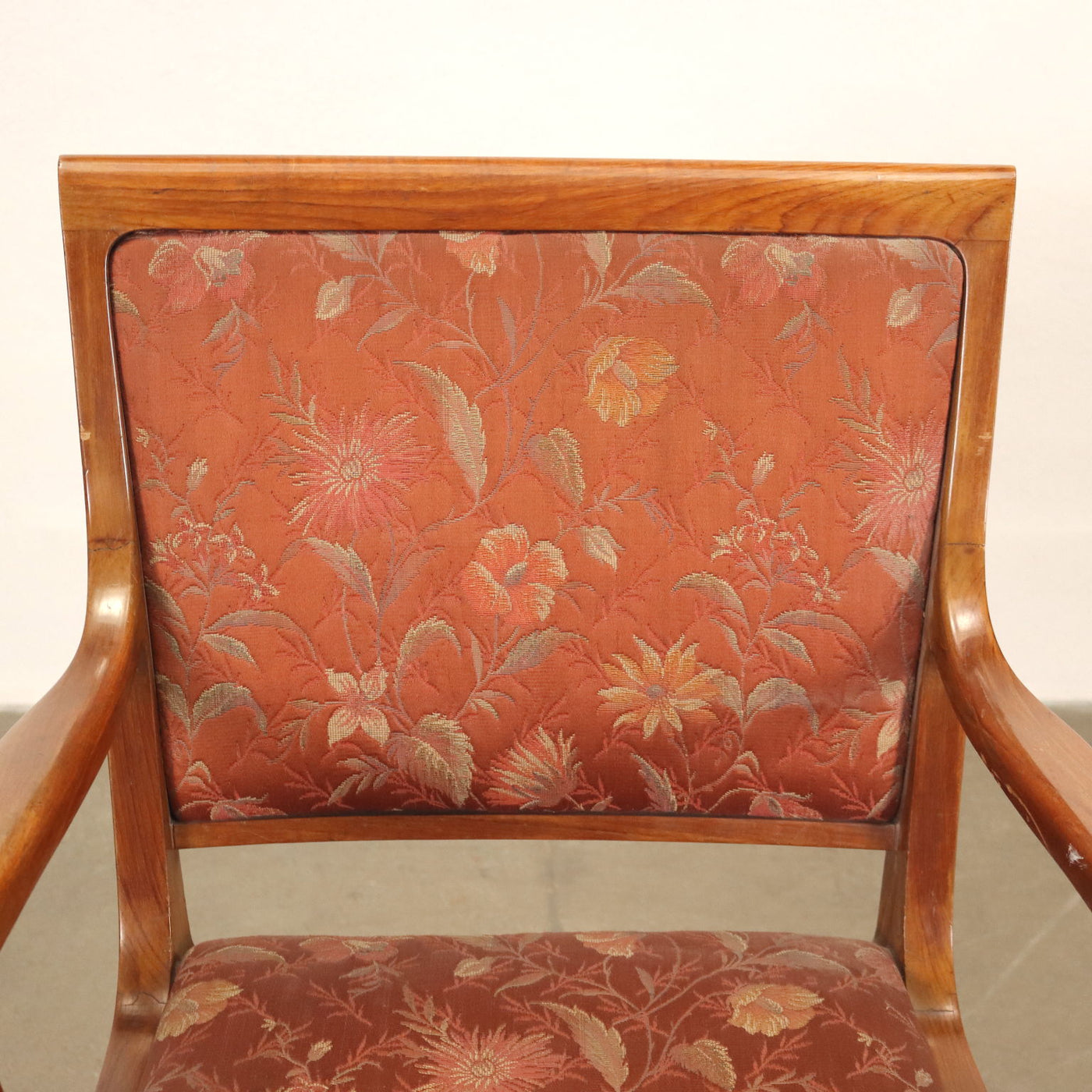 Armchair with structure in mahogany wood, seat and back in fabric. Vintage Armchair, small armchairs, 1970s armchair, 1960s armchair, 1950s armchair, 1940s armchair, 1930s armchair, vintage armchair, design armchair, chaise lounge, office's armchair, bergère .
