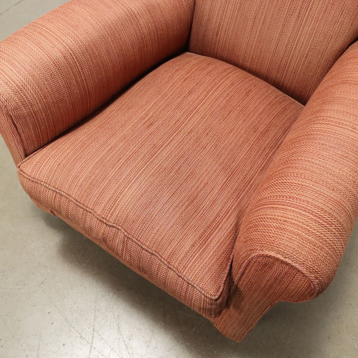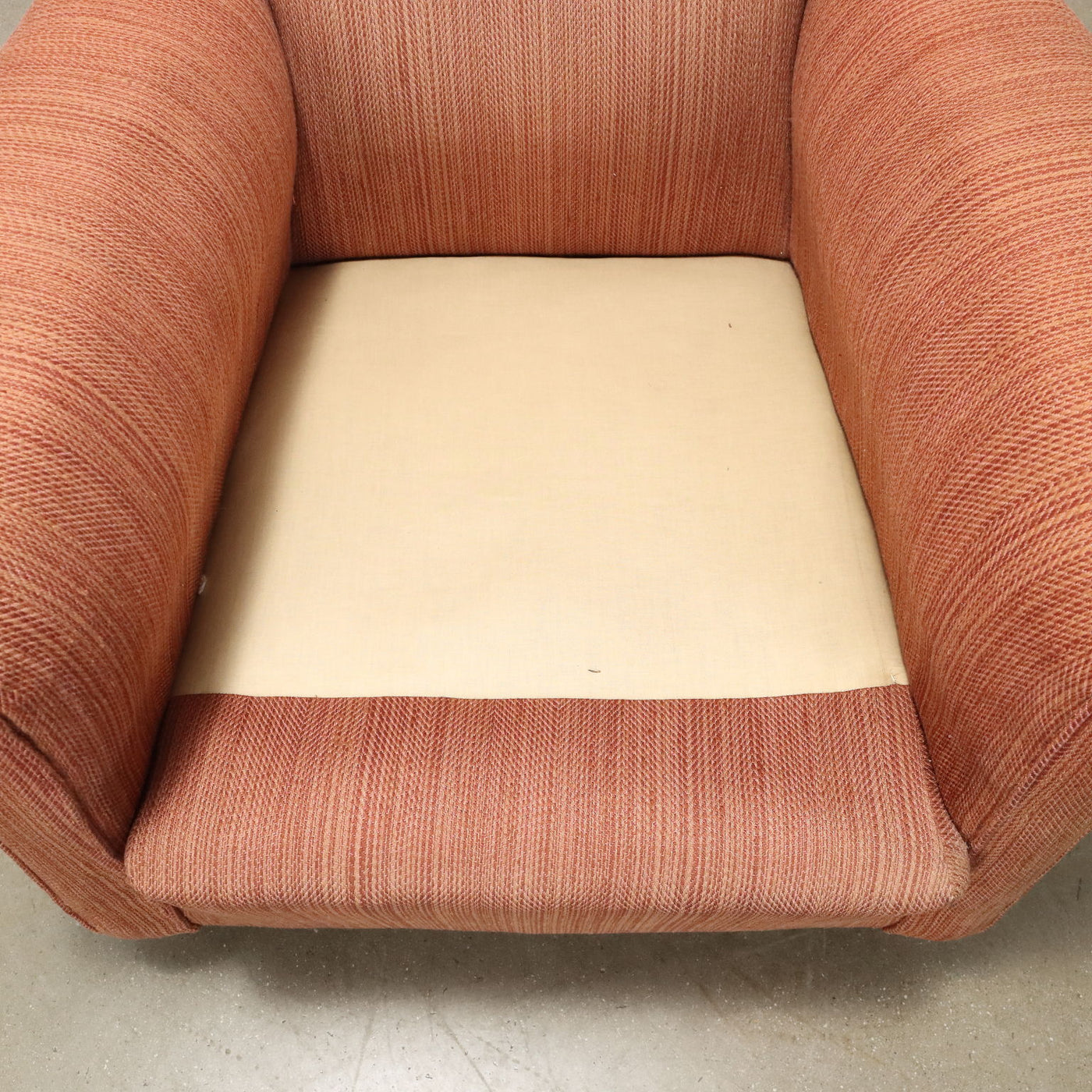 Vintage armchair of Italian manufacture with original period fabric upholstery and truncated pyramid wooden feet. Vintage Armchair, small armchairs, 1970s armchair, 1960s armchair, 1950s armchair, 1940s armchair, 1930s armchair, vintage armchair, design armchair, chaise lounge, office's armchair, bergère .
