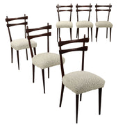 Set of 6 chairs, stained beech wood, foam seat with fabric covering. Design Chair, 1970s chair, 1960s chair, 1950s chair, 1940s chair, vintage chair, design chairs, office chair.