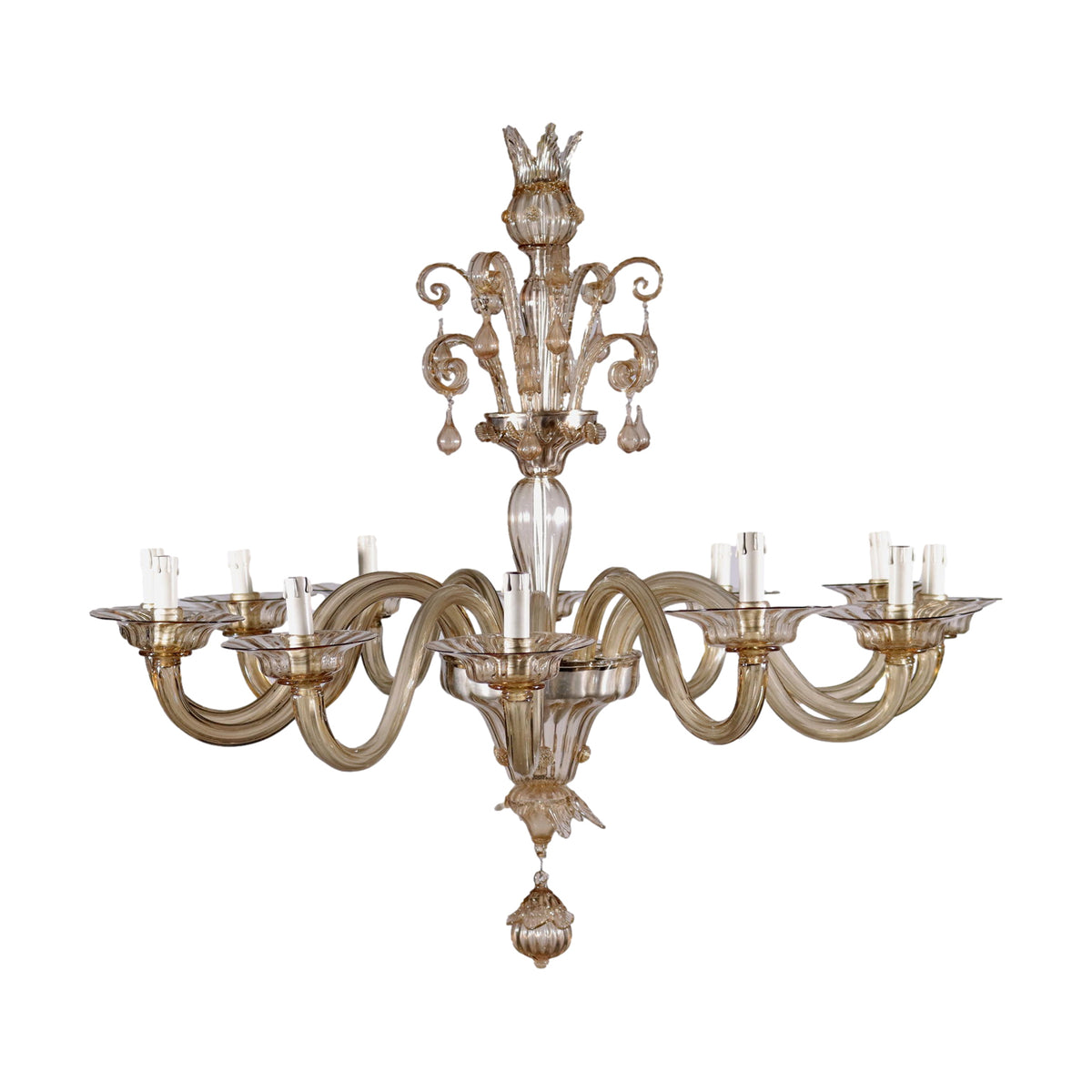 Murano chandelier in blown glass, with 12 lights; has small breaks. Ceiling lamp, oil lamp, lantern, chandelier, ceiling lamp.