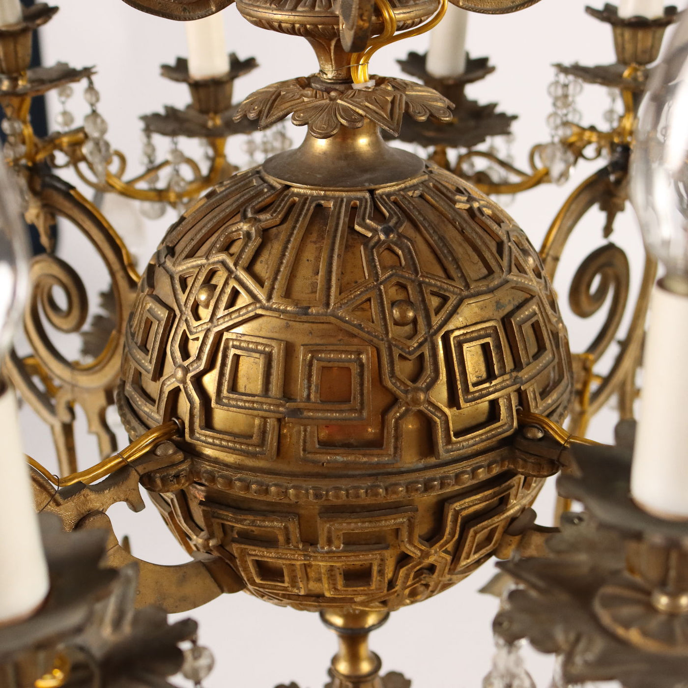Ancient Neo-Gothic Chandelier Crystal Gilded Bronze XIX Century