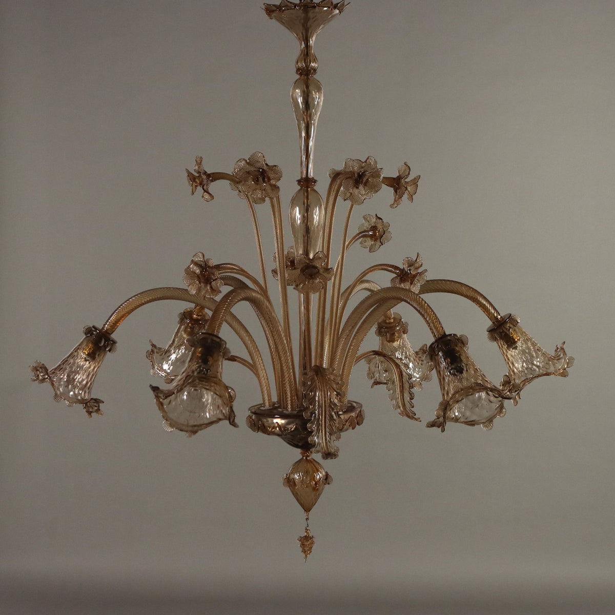 Vintage Chandelier Murano Glass 6 Lights Design Italy 1950s