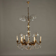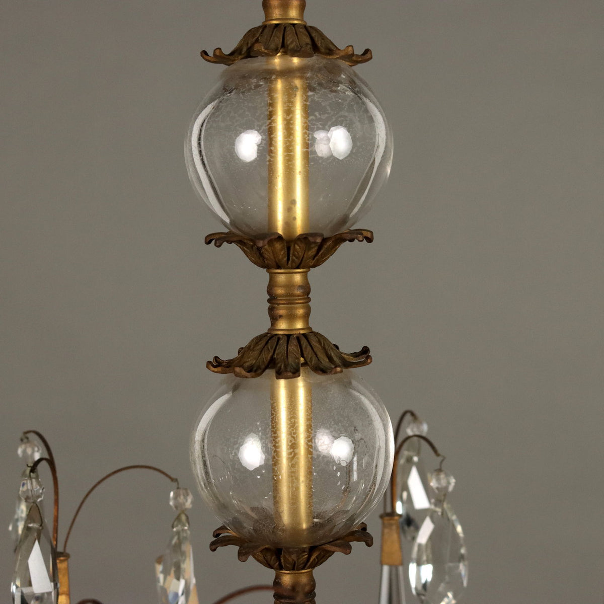 Antique Chandelier Burnished Metal 6 Branches Glass Italy XX Century