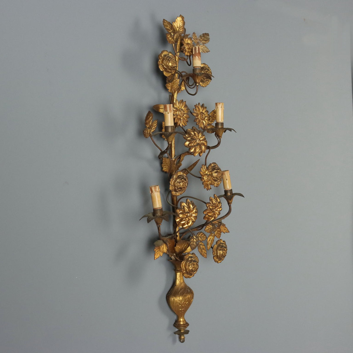 Antique Wall Lamp Iron Gilded Metal 5 Lights Italy XX Century