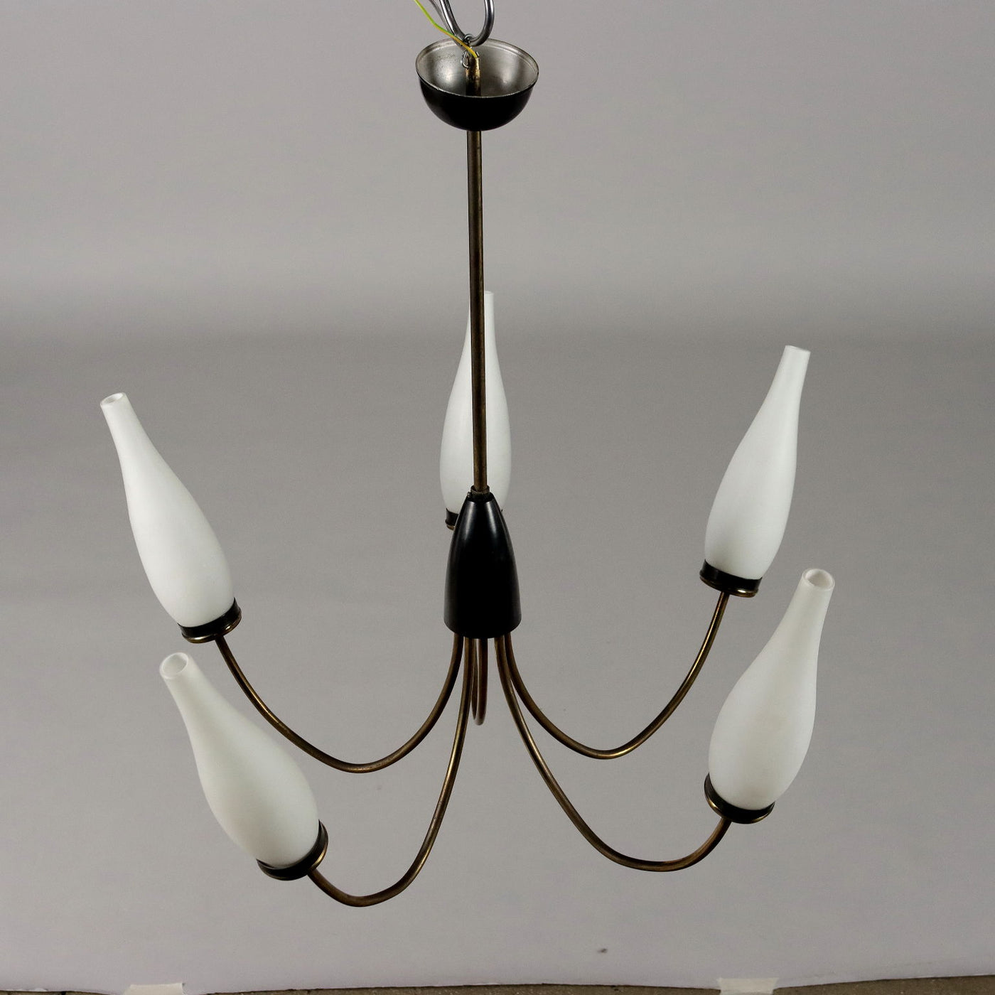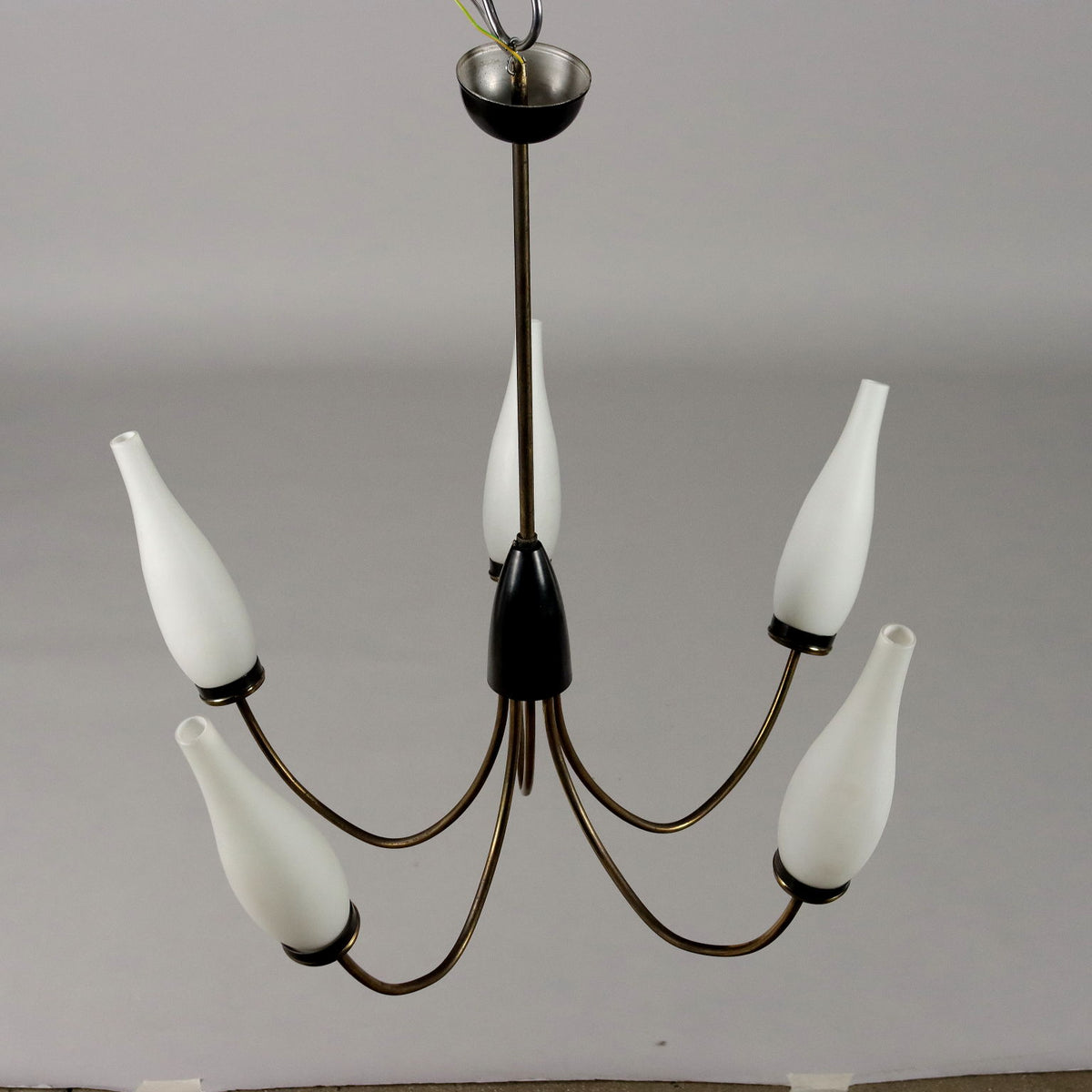 Ceiling lamp made of brass, enamelled aluminium and opal glass. vintage chandelier, design ceiling lamp, design chandeliers, ceiling lamp.