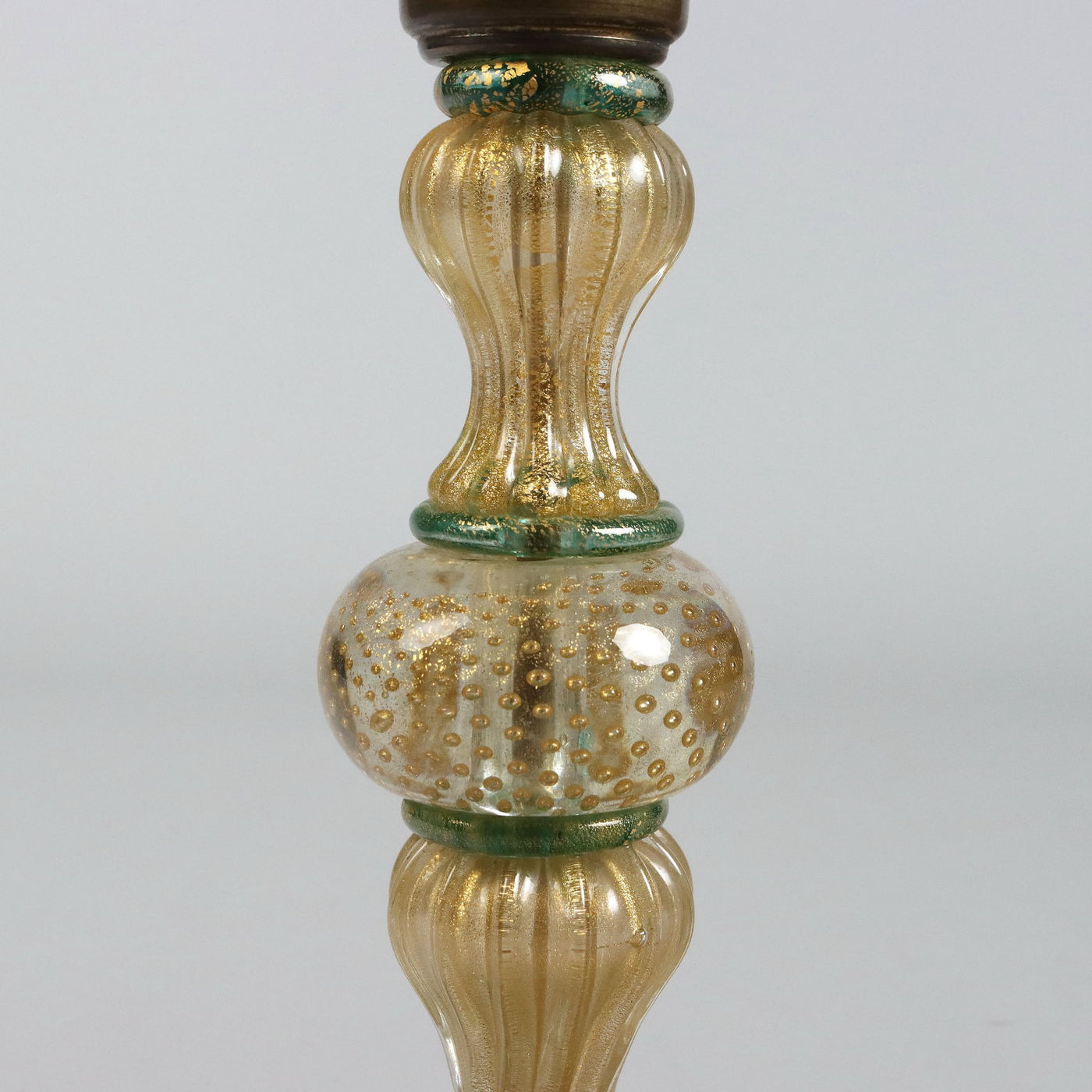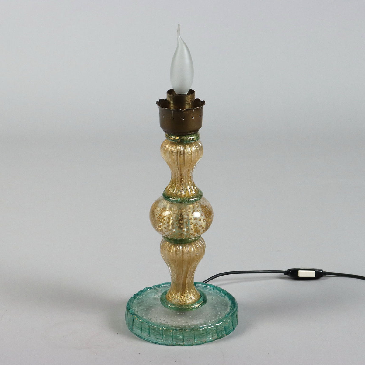 Table lamp in blown glass, gold dust and brass. 1970s table lamp, 1960s table lamp, table lamp, design table lamp.