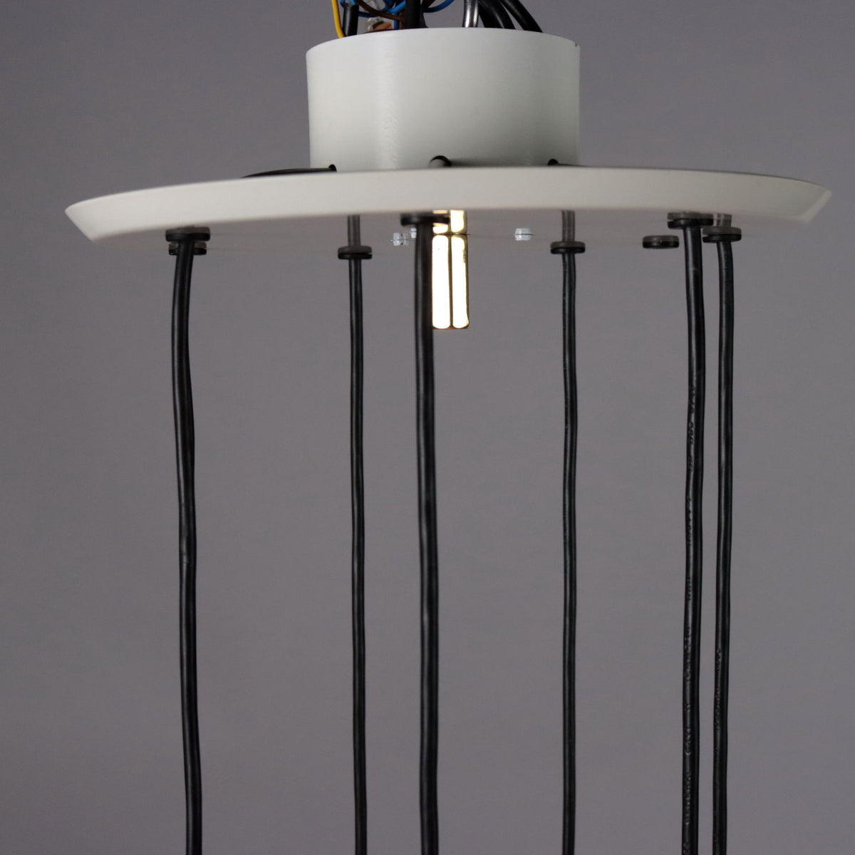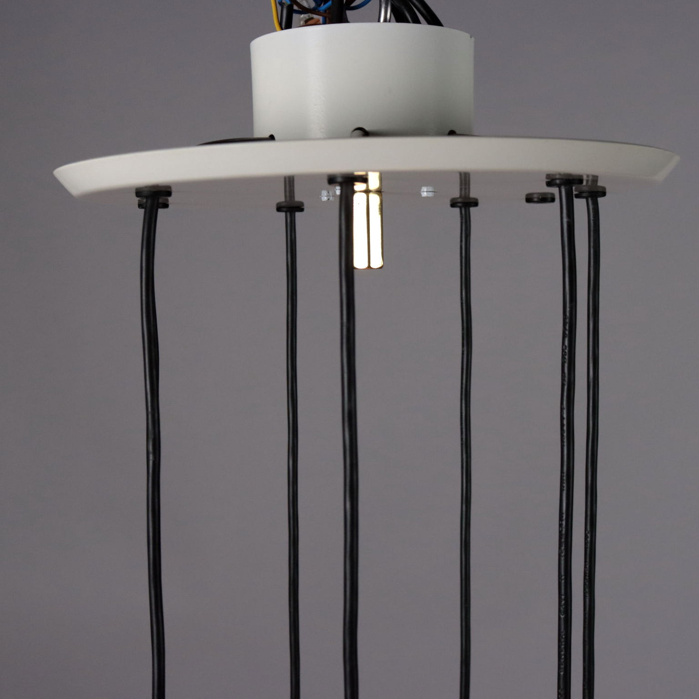 Ceiling lamp, 7 lights in enamelled aluminium, brass and glass. vintage chandelier, design ceiling lamp, design chandeliers, ceiling lamp.