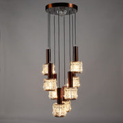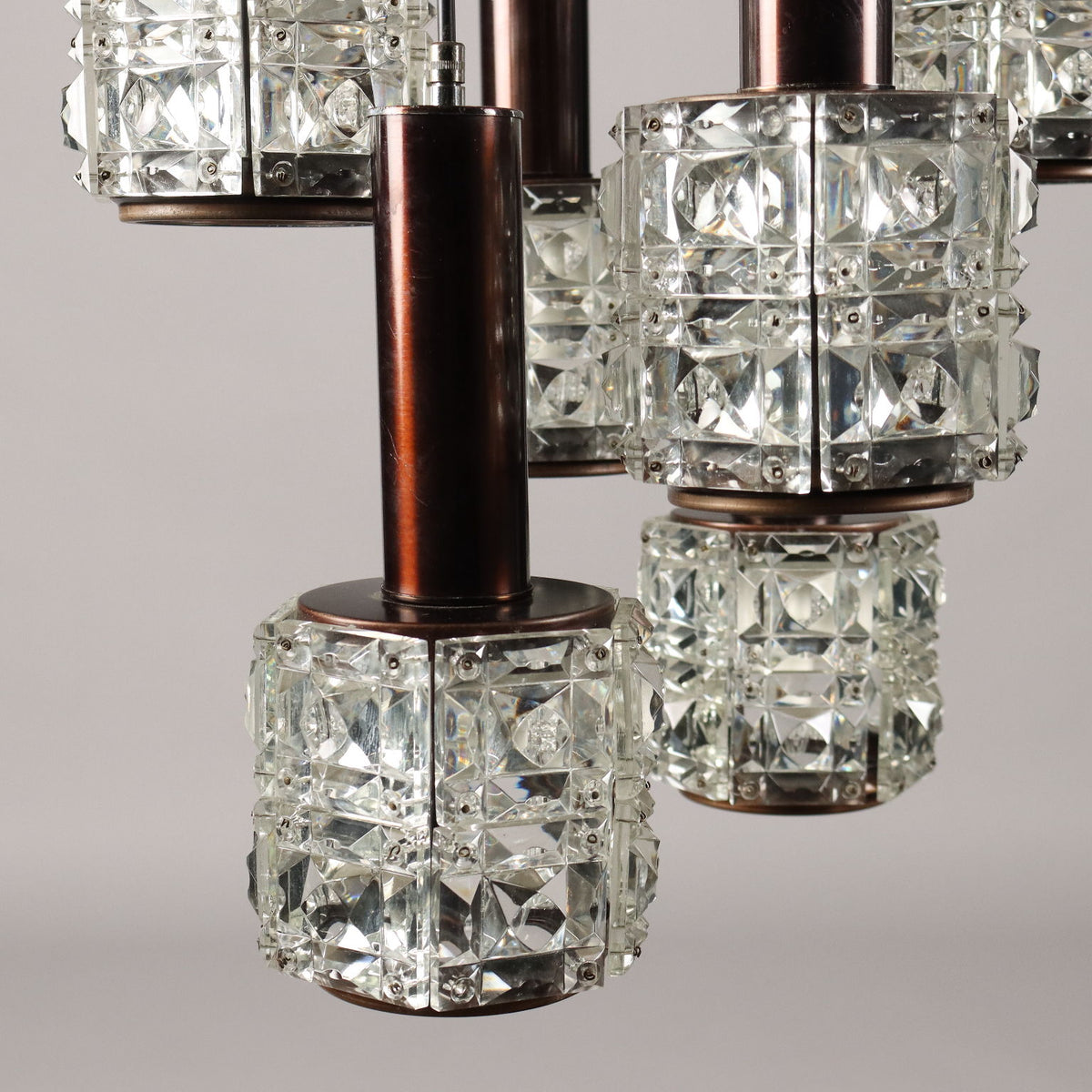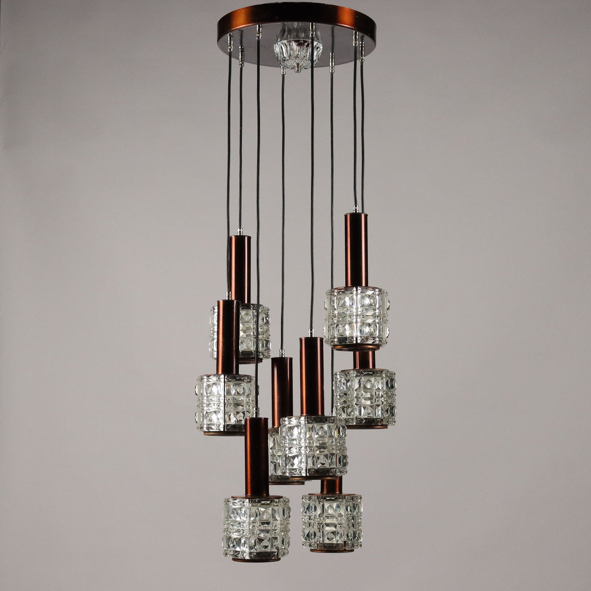 Ceiling chandelier with 8 pendants, enamelled aluminum and metal, glass. vintage chandelier, design ceiling lamp, design chandeliers, ceiling lamp.