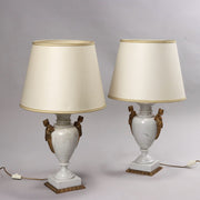 Pair of Vintage Lamps White Marble Brass Italy XX Century
