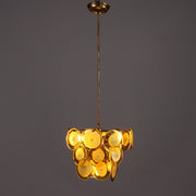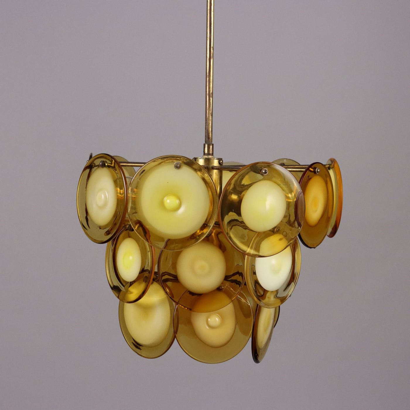 Ceiling lamp with brass frame and blown glass discs. vintage chandelier, design ceiling lamp, design chandeliers, ceiling lamp.