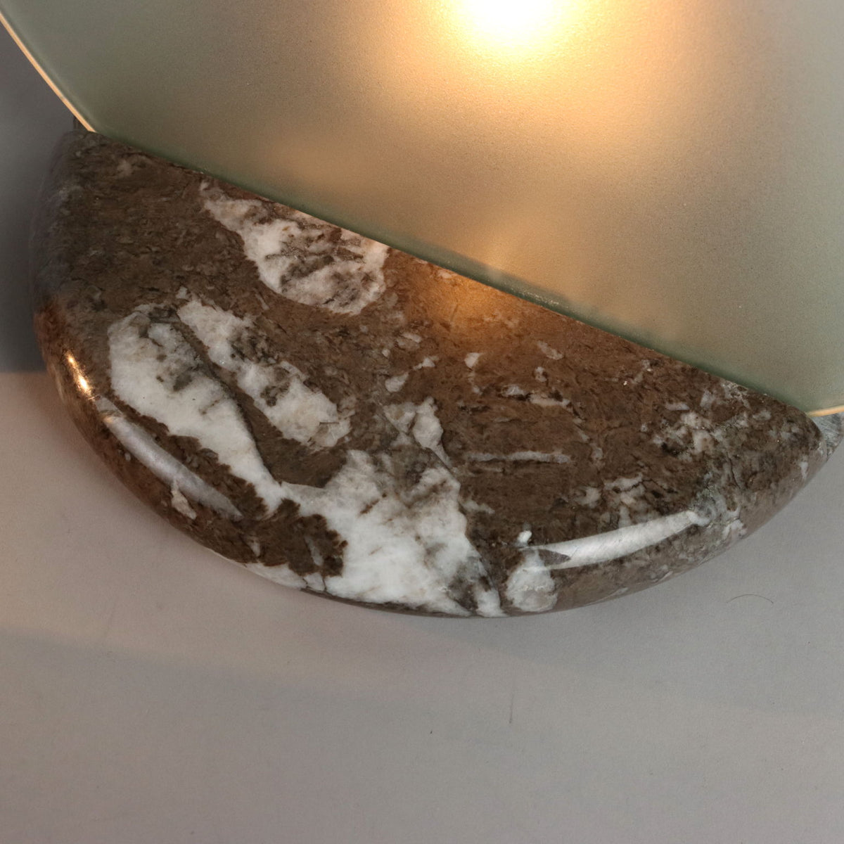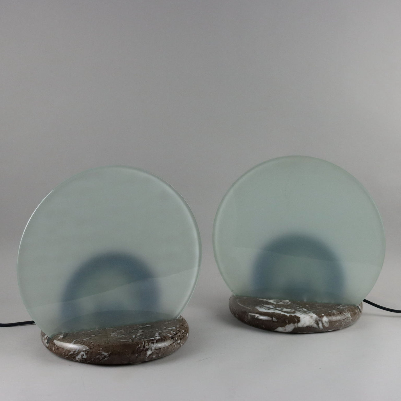 Pair of table lamps with marble, aluminum and glass base. 1970s table lamp, 1960s table lamp, table lamp, design table lamp.