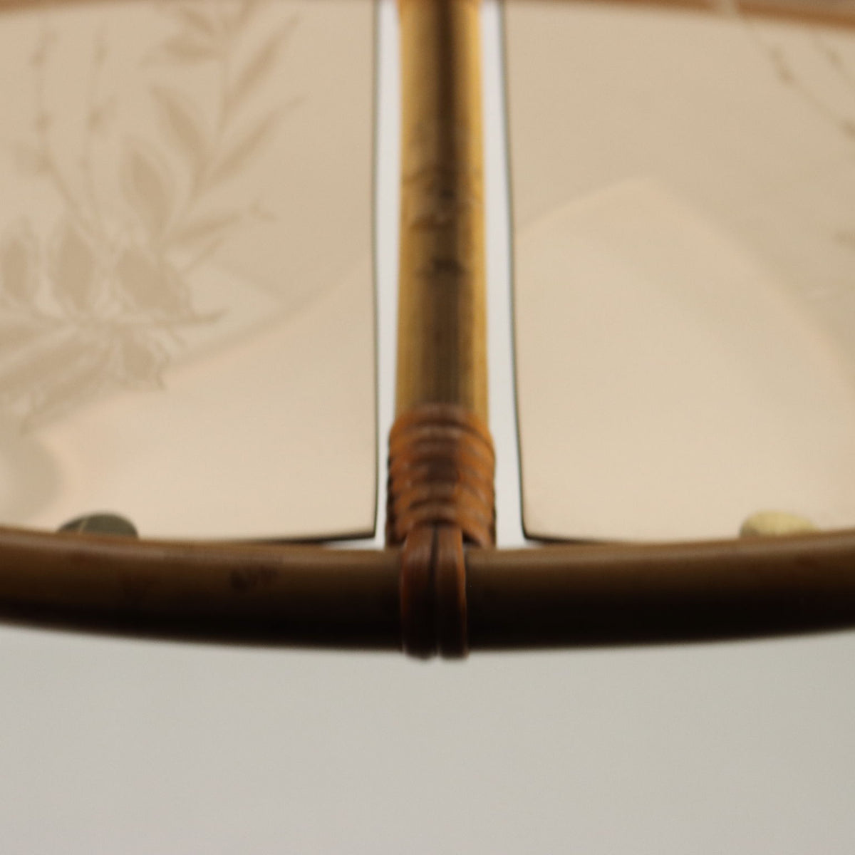 Ceiling lamp in bamboo, curved and decorated smoked glass. vintage chandelier, design ceiling lamp, design chandeliers, ceiling lamp.