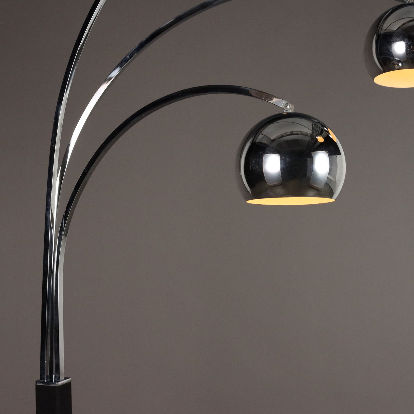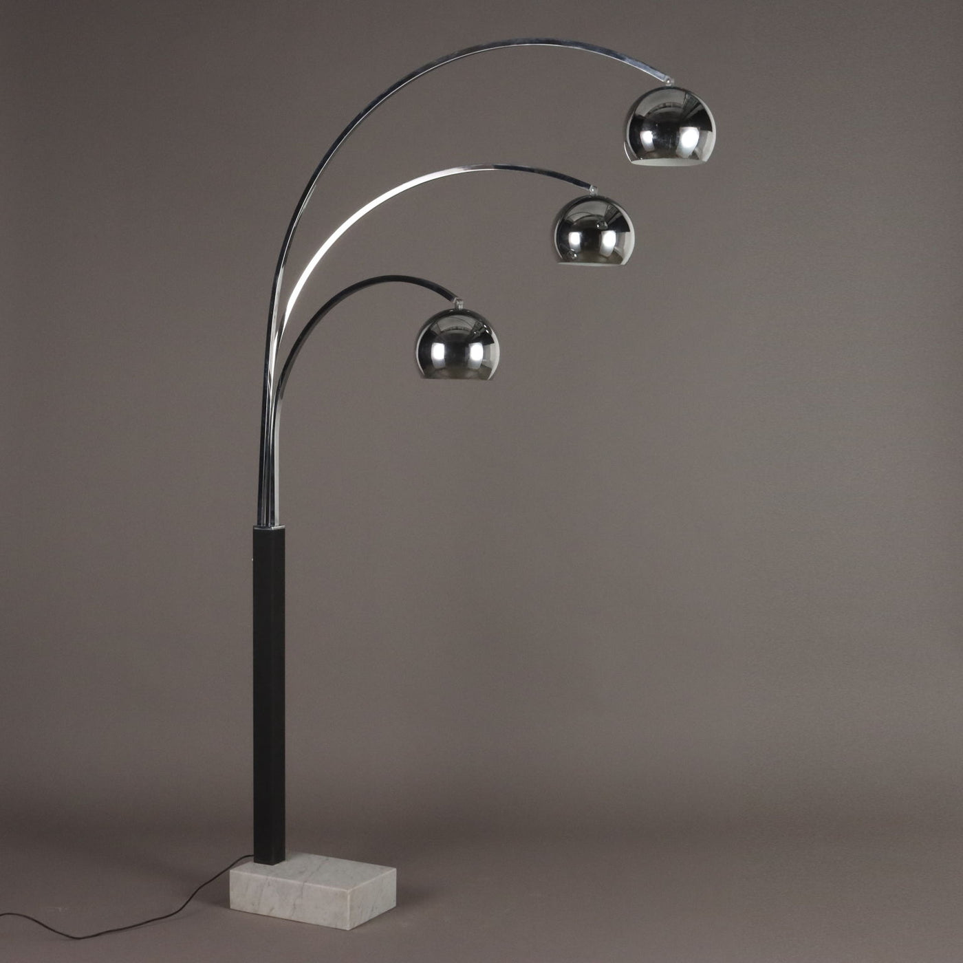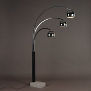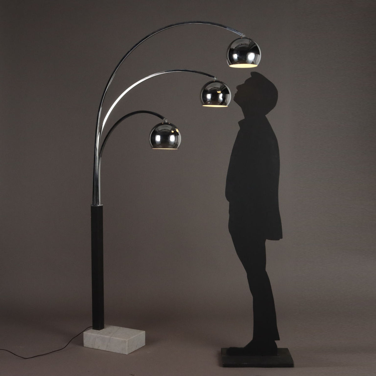 Floor lamp made in Italy with marble base, metal structure, aluminum stem and three light points. Design floor lamp, vintage floor lamp, 1970s floor lamp, 1960s floor lamp, 1950s floor lamp, floor lamp.