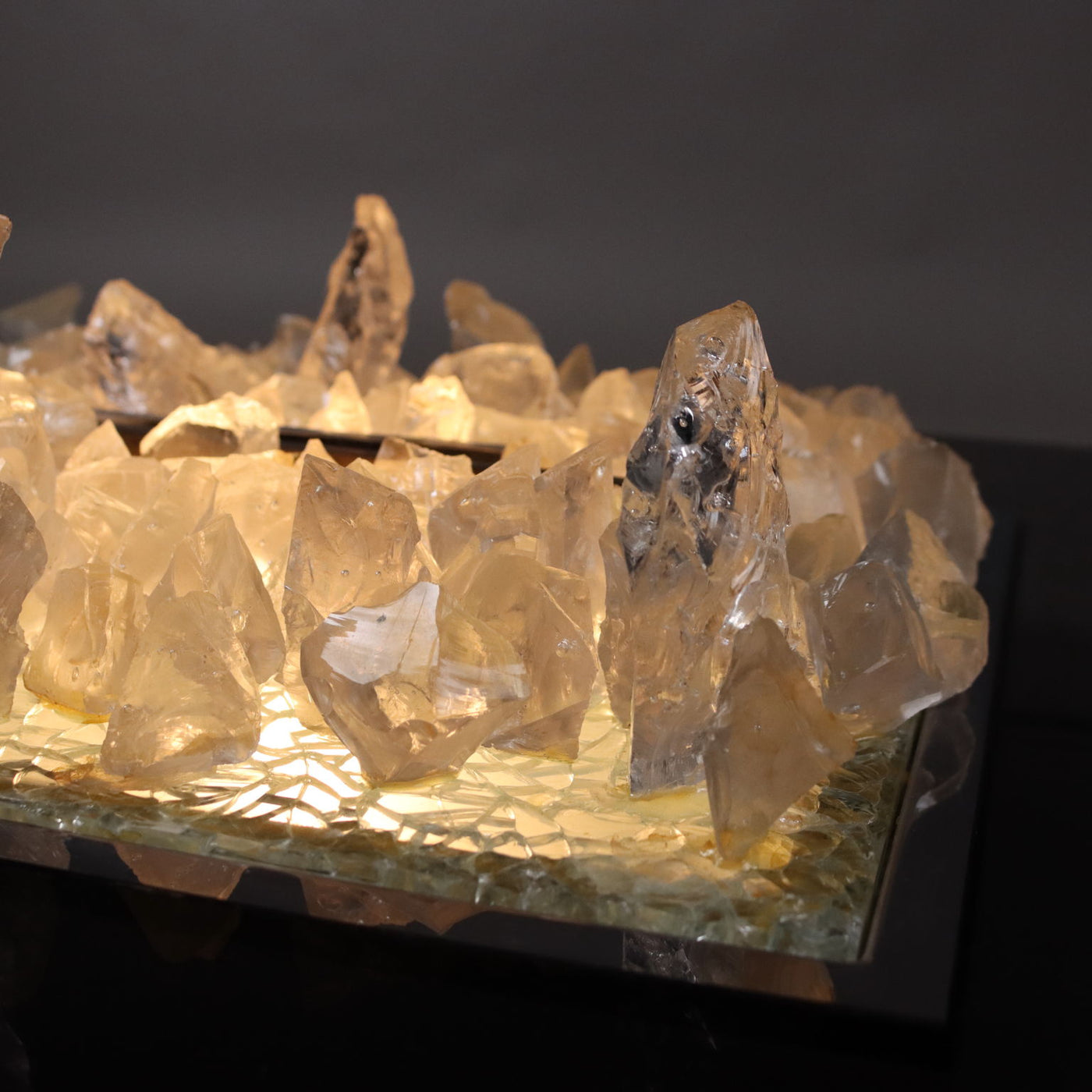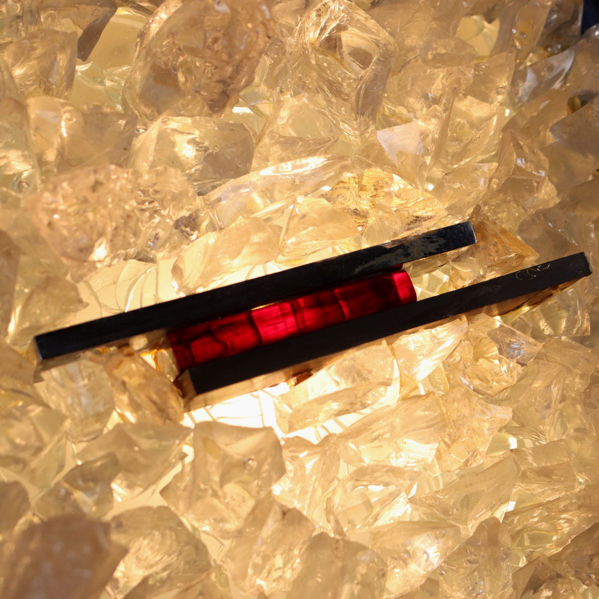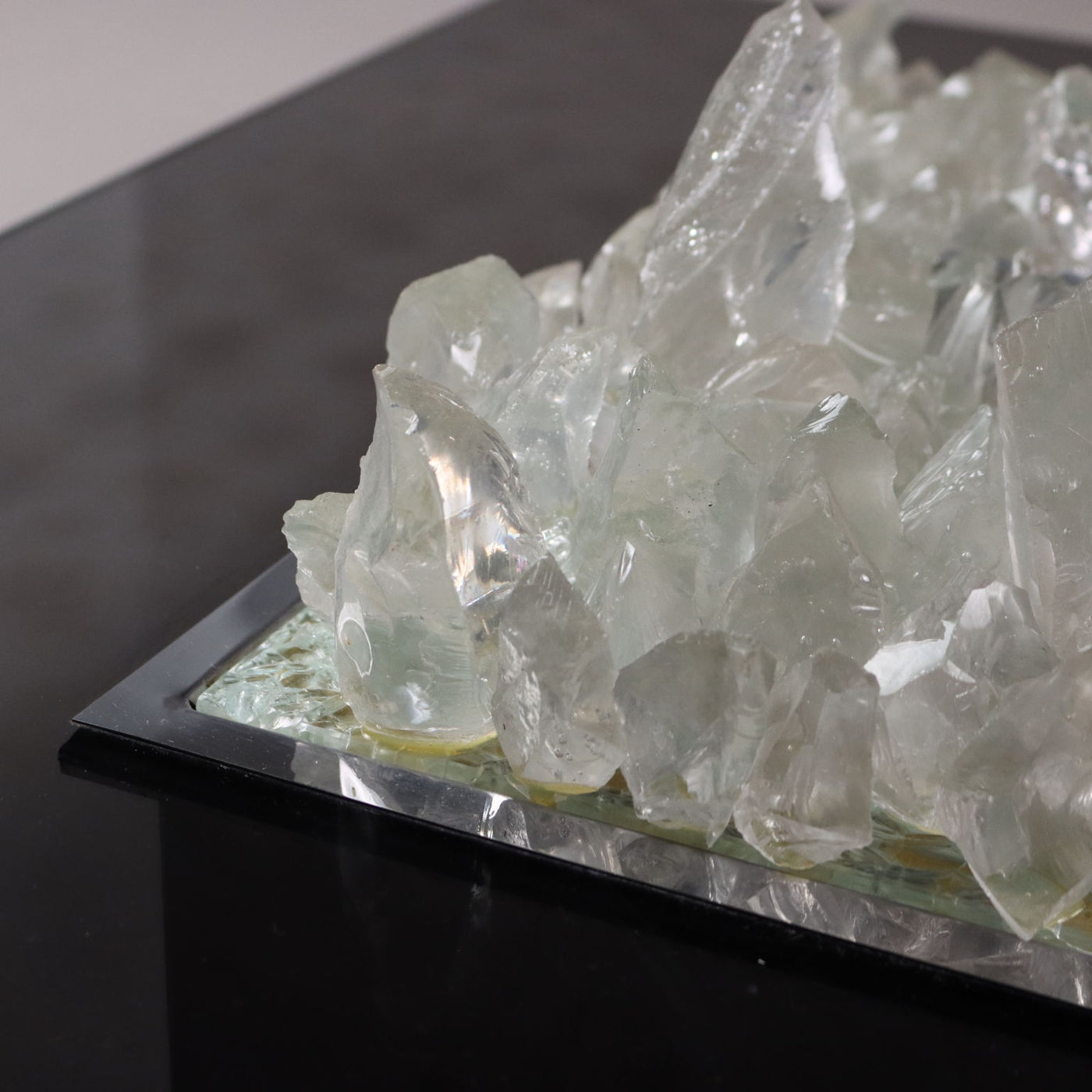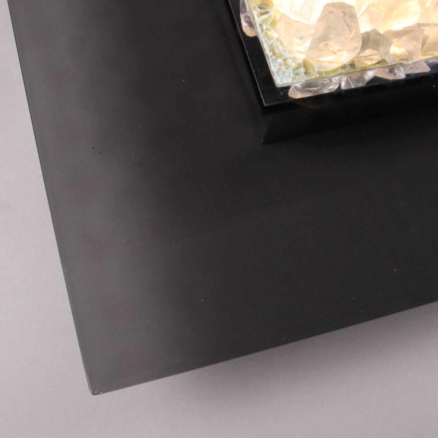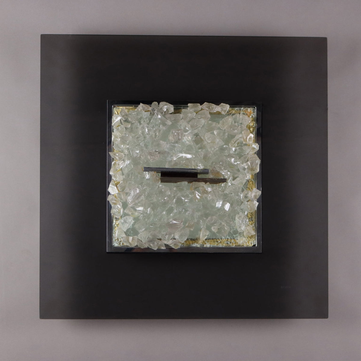 Panel, with smoked glass frame, and central part with pieces of backlit glass. Good condition (some pieces of the central part are missing) Design wall lamp, table lamp, living room design lamps, living room design wall-lamp, vintage wall lamp, design wall lamp, 1970s wall lamps, 1960s wall lamps, 1950s wall lamp, 1940s wall lamps, wall lamp.