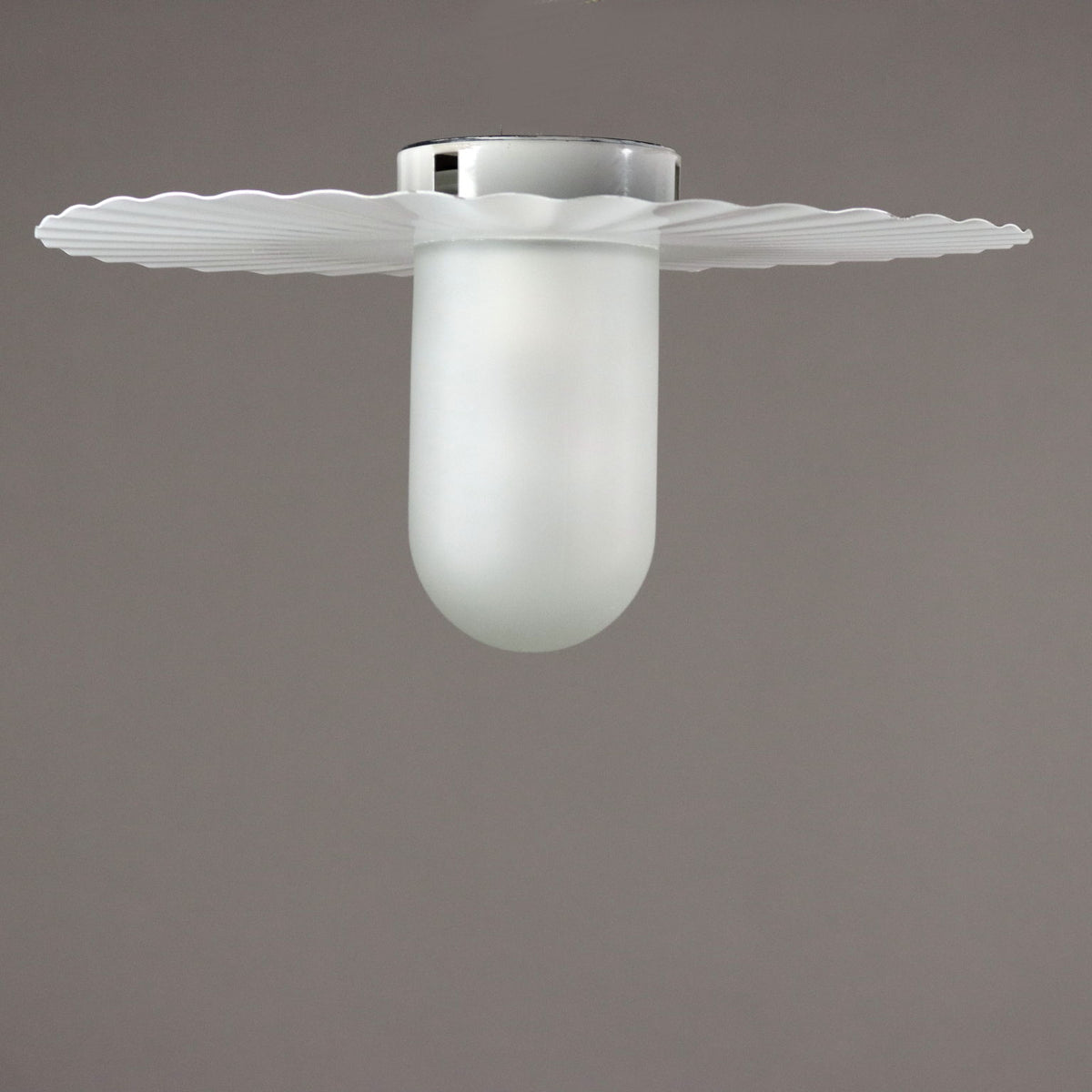 1980s ceiling or wall lamp in white enamelled metal with opal glass light point. vintage chandelier, design ceiling lamp, design chandeliers, ceiling lamp.