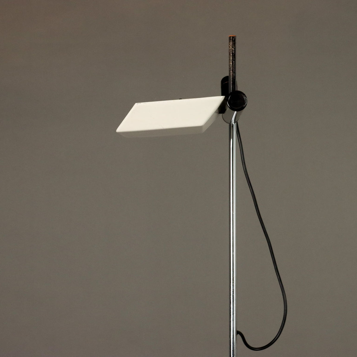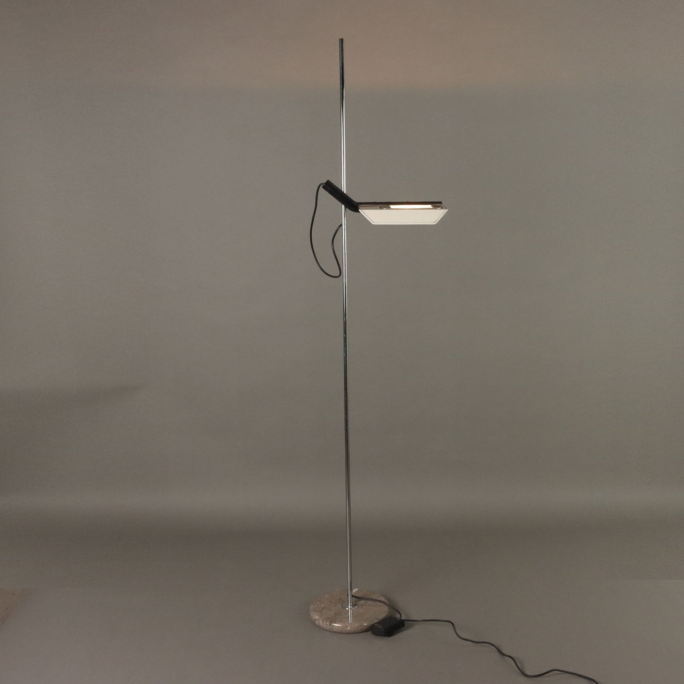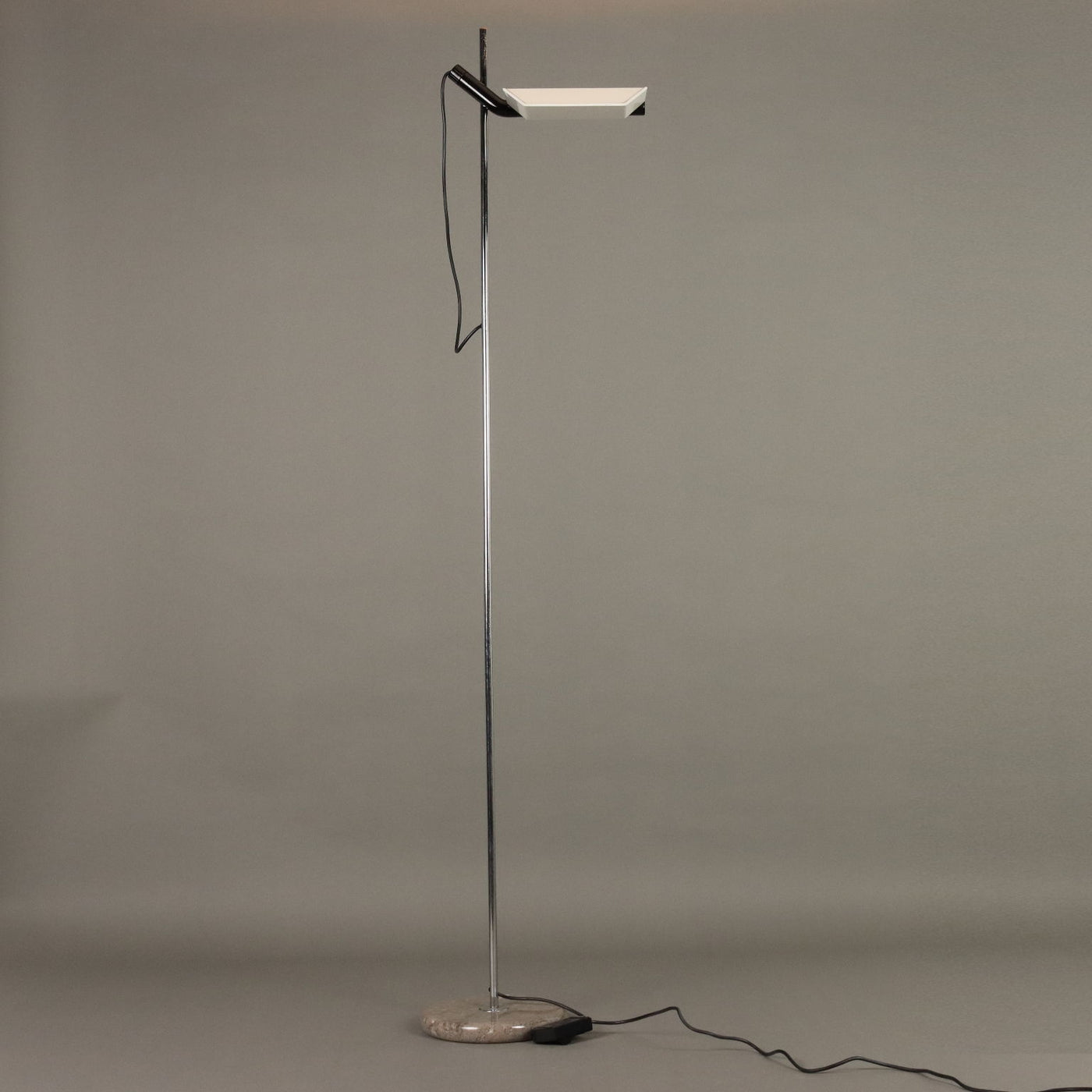 Floor lamp, with reflected light point, adjustable position by sliding and adjustable inclination. Composed of chromed metal, enameled aluminum and marble base. Design floor lamp, vintage floor lamp, 1970s floor lamp, 1960s floor lamp, 1950s floor lamp, floor lamp.
