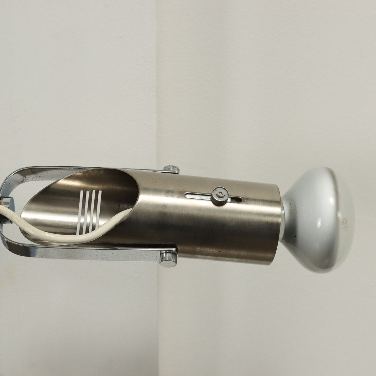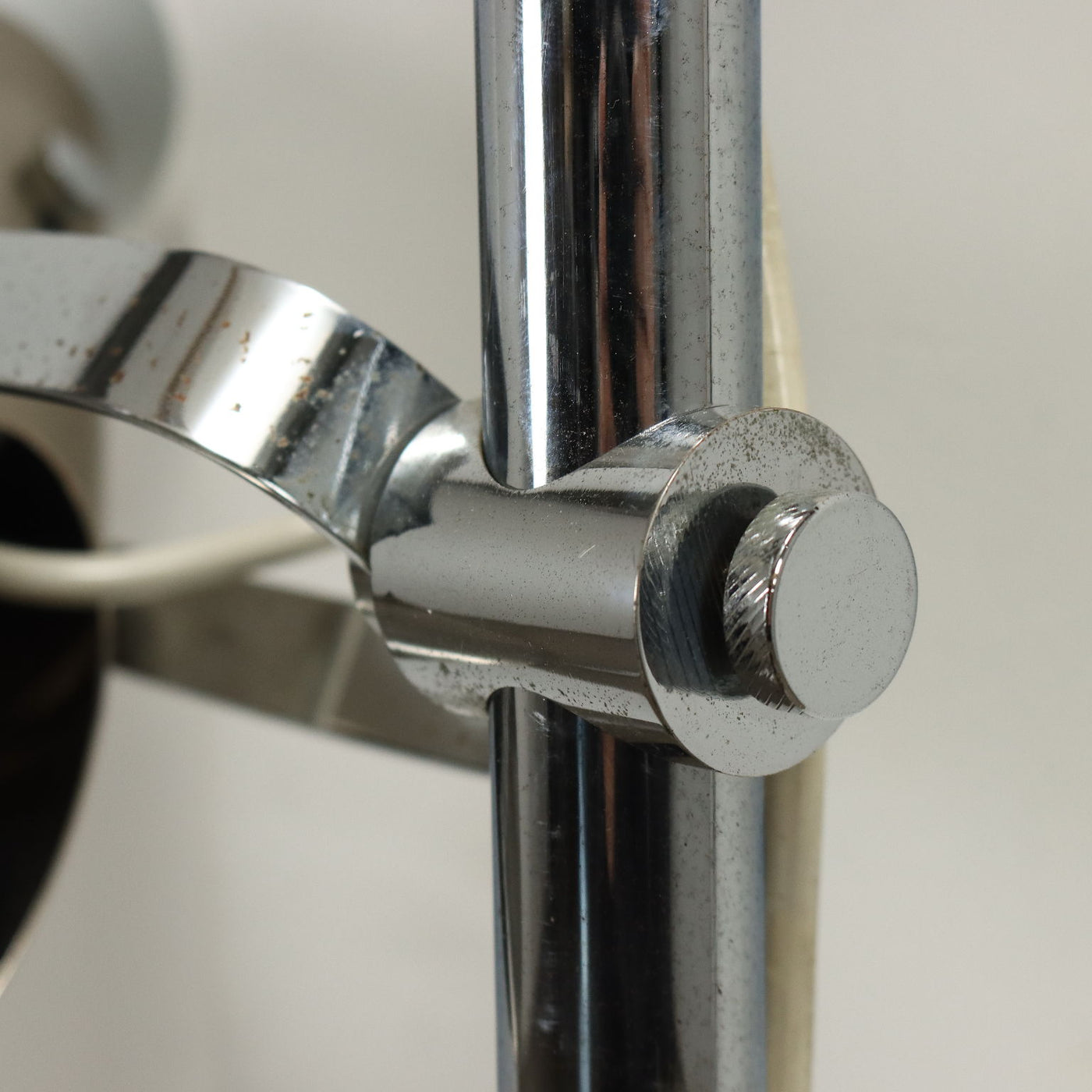 Lamp that requires pressure anchoring between floor and ceiling, three adjustable light points, sliding and directional, chromed metal and aluminum. Design floor lamp, vintage floor lamp, 1970s floor lamp, 1960s floor lamp, 1950s floor lamp, floor lamp.
