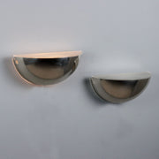 Two vintage wall lamps with indirect light in mirrored metal and plastic material. Design wall lamp, table lamp, living room design lamps, living room design wall-lamp, vintage wall lamp, design wall lamp, 1970s wall lamps, 1960s wall lamps, 1950s wall lamp, 1940s wall lamps, wall lamp.