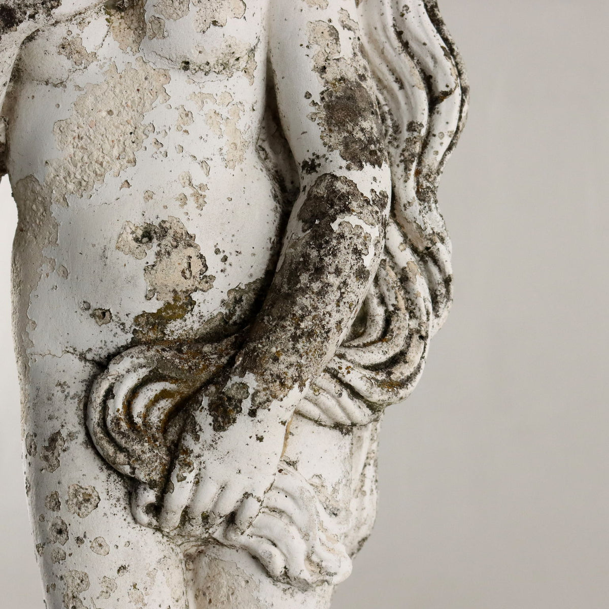 Garden statue in grit depicting the Venus from the painting 'The Birth of Venus' by Sandro Botticelli, Italy, early 20th century. Venus is depicted standing on a shell, in a modest attitude. Sculptures, marble, bronzes, low-relief, relief, well-rounded, bust, sculpture, statue, ancient garden articles, , antiques furnishing, ancient supplies, garden supplies.