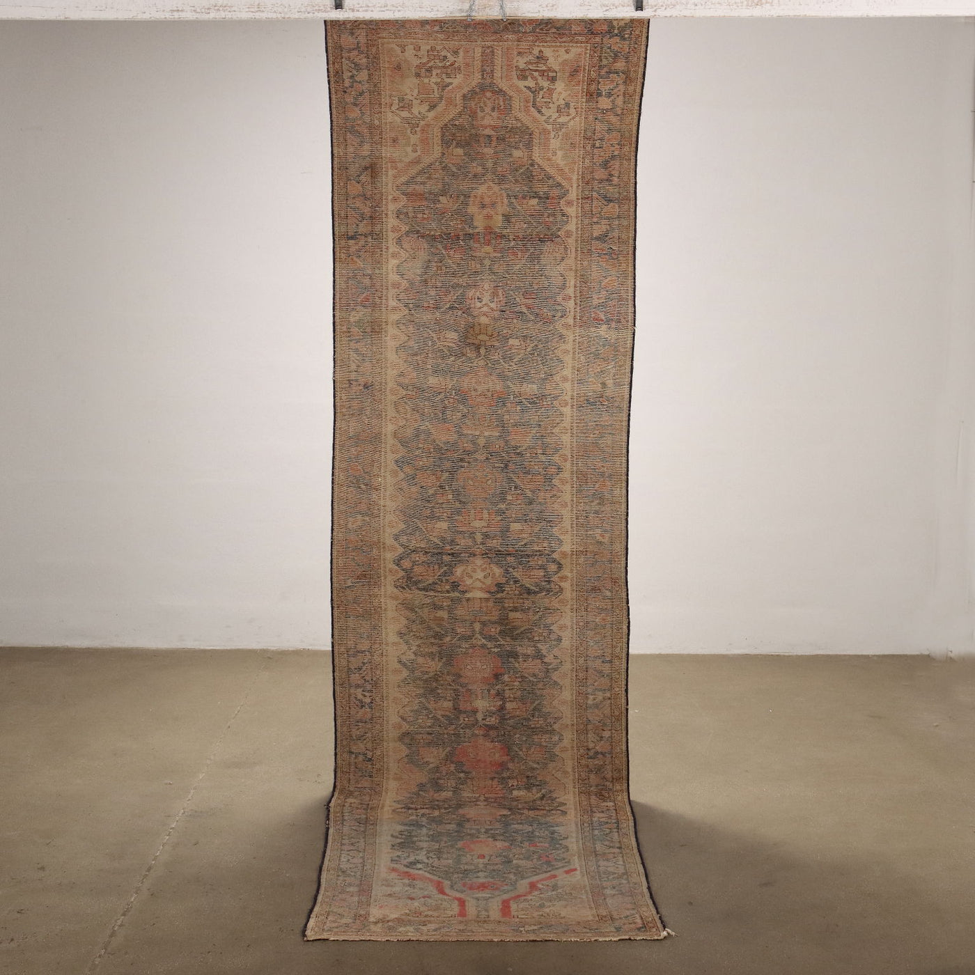 Antique Malayer Carpet Cotton Wool Thin Knot Iran 161 x 42 In