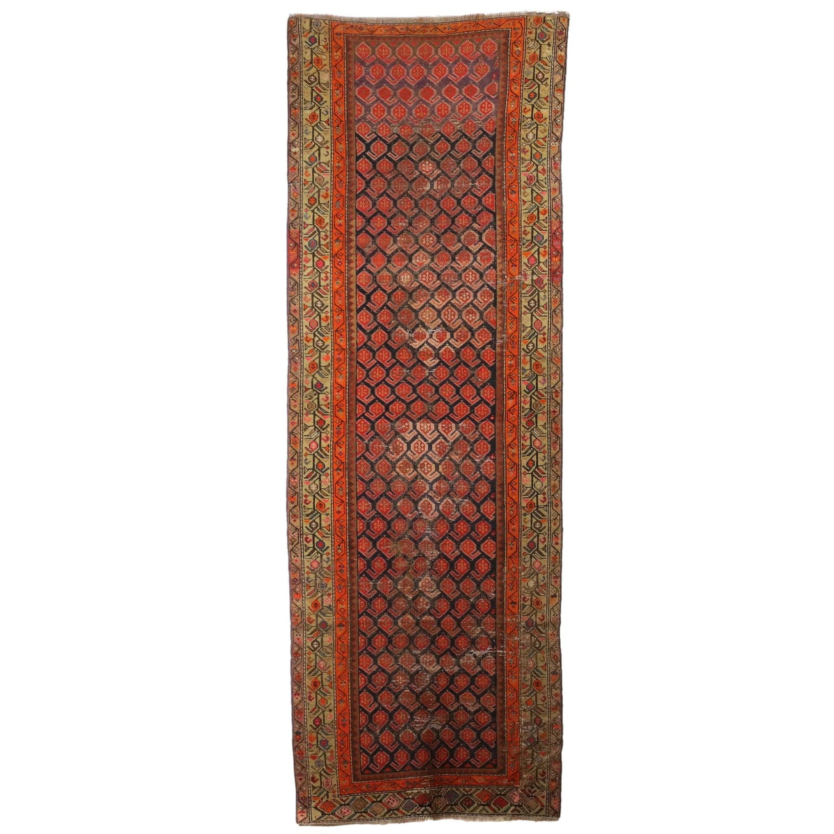Antique Malayer Carpet Cotton Wool Thin Knot Iran 116 x 39 In