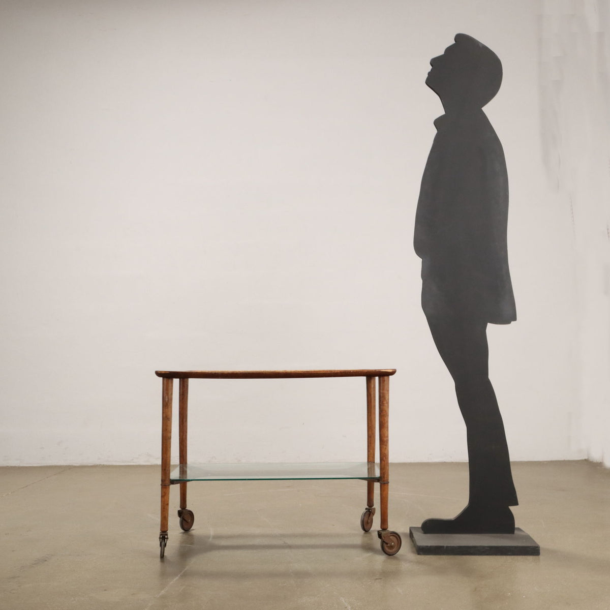 Double-deck service trolley in beech wood and glass. oriental carpets, mirror.
