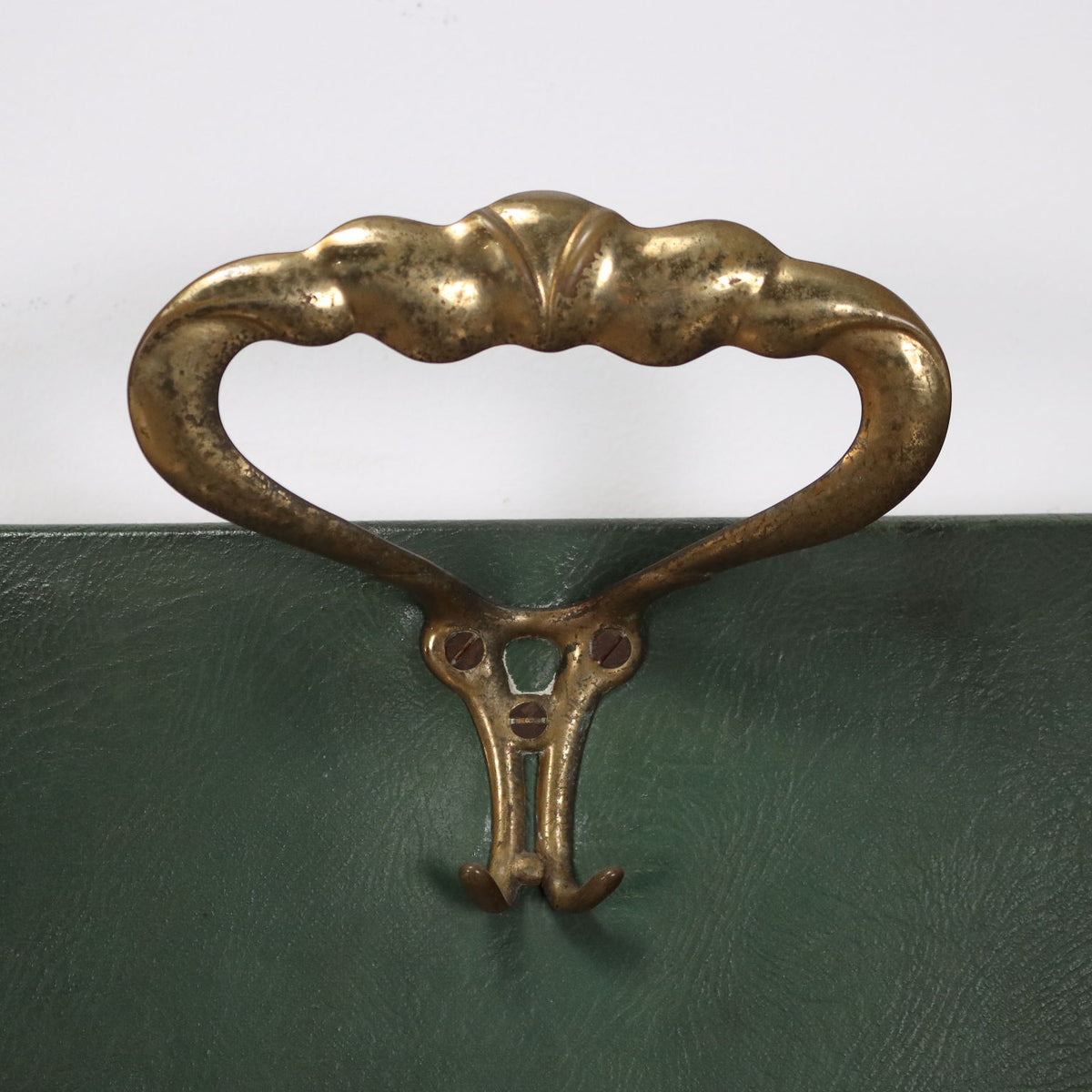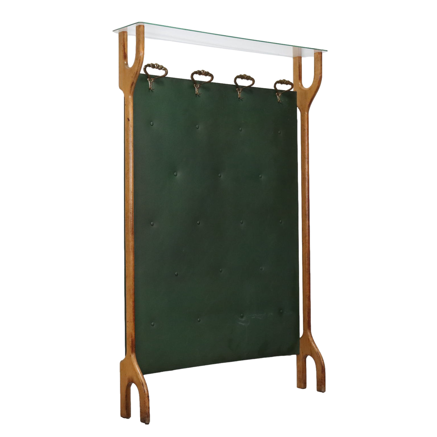 Vintage Coat Stand Brass Leatherette Glass Italy 1950s