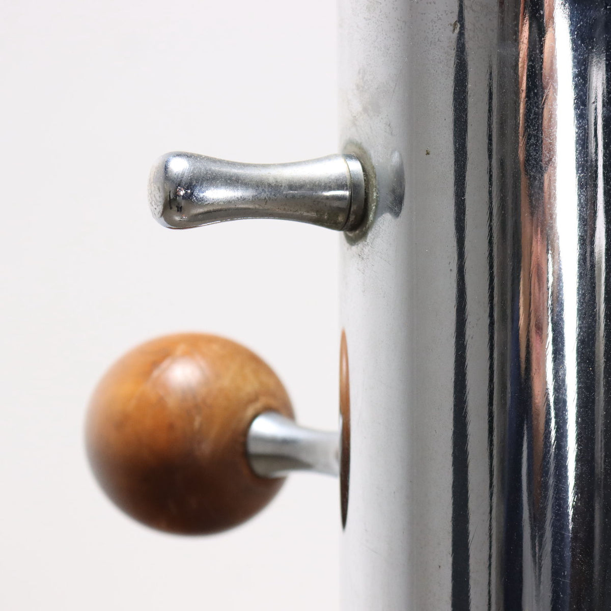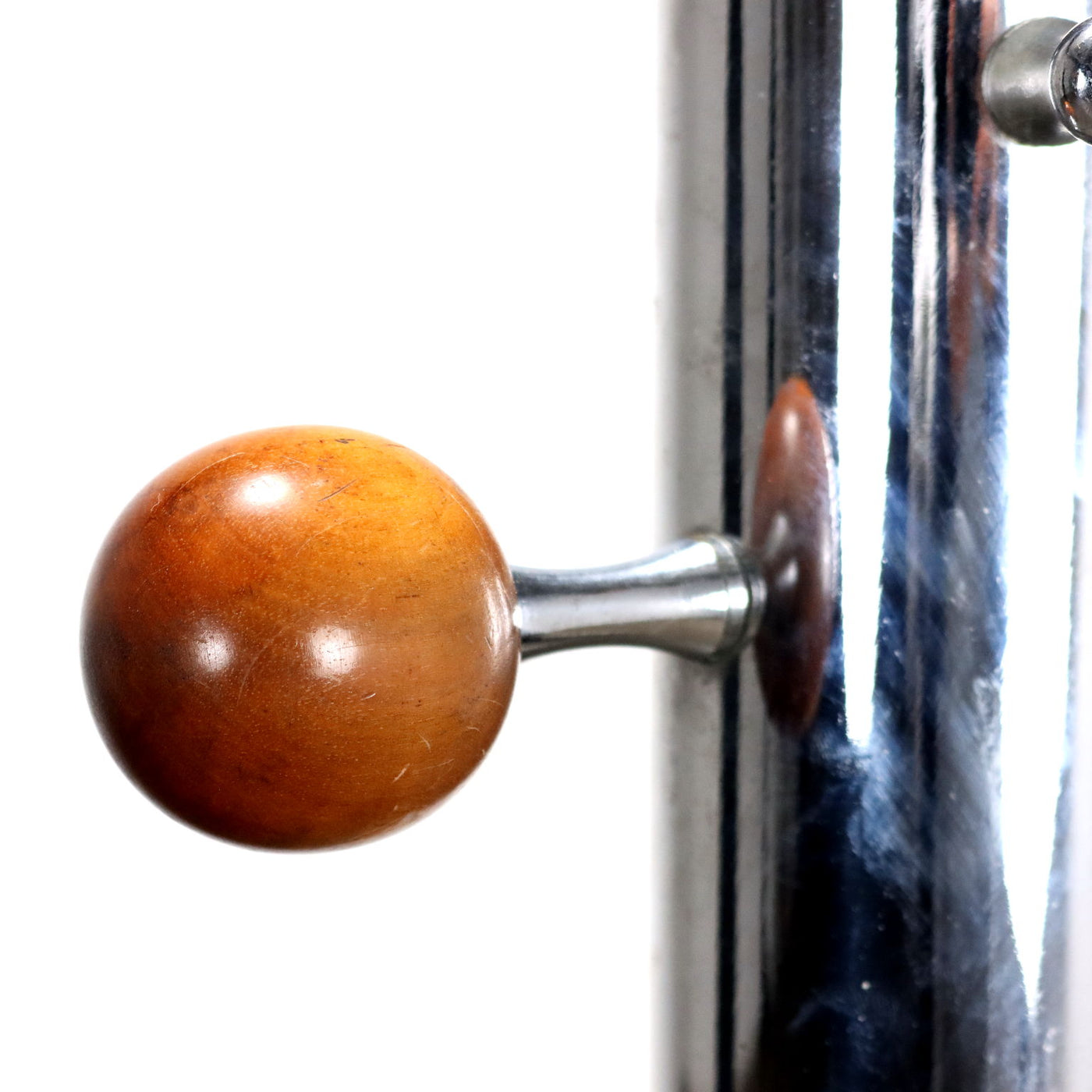 Vintage coat stand made in Italy in enamelled and chromed metal with wooden details. oriental carpets, mirror.