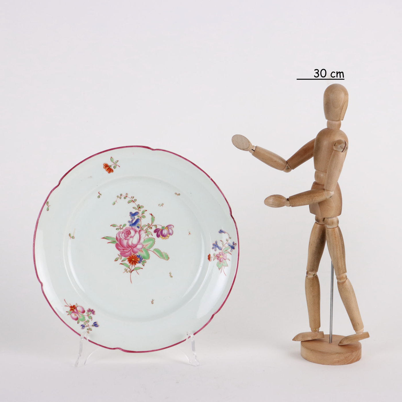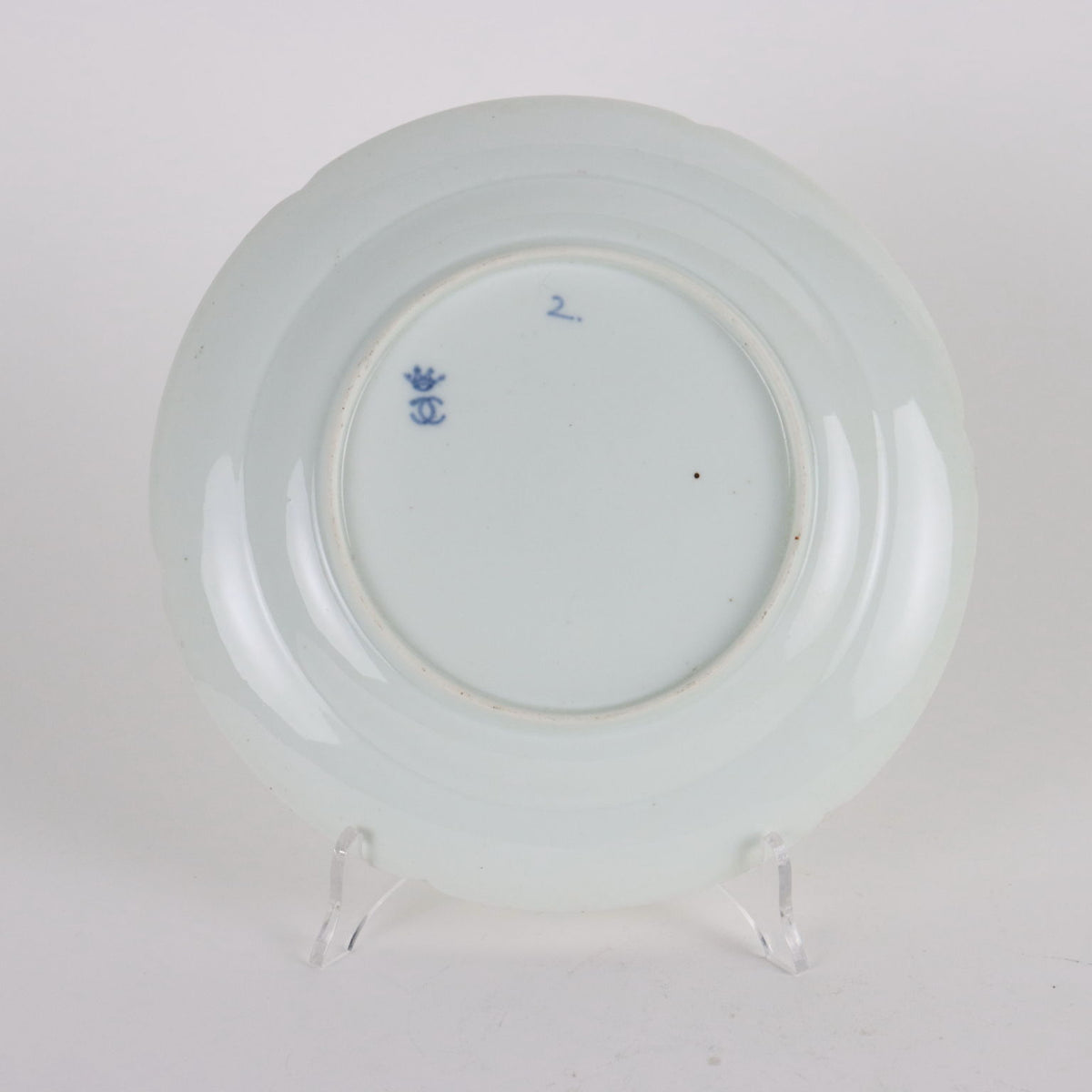 Pair of polylobed plates in white porcelain with polychrome decorations with plant motifs. Manufacture mark on the reverse. collector's articles, ancient objects, porcelain, ceramics.