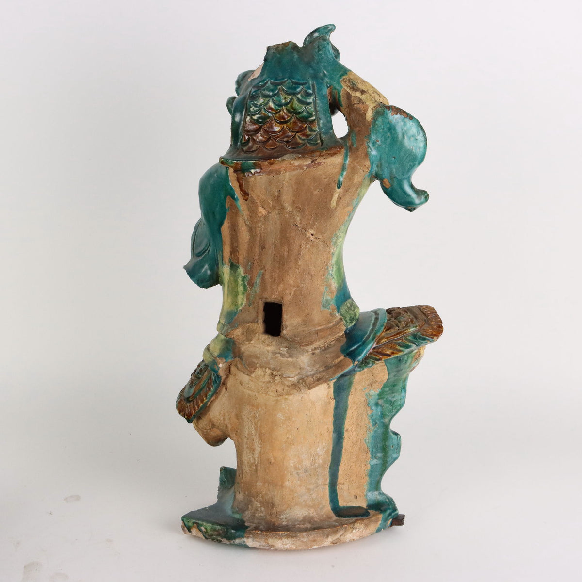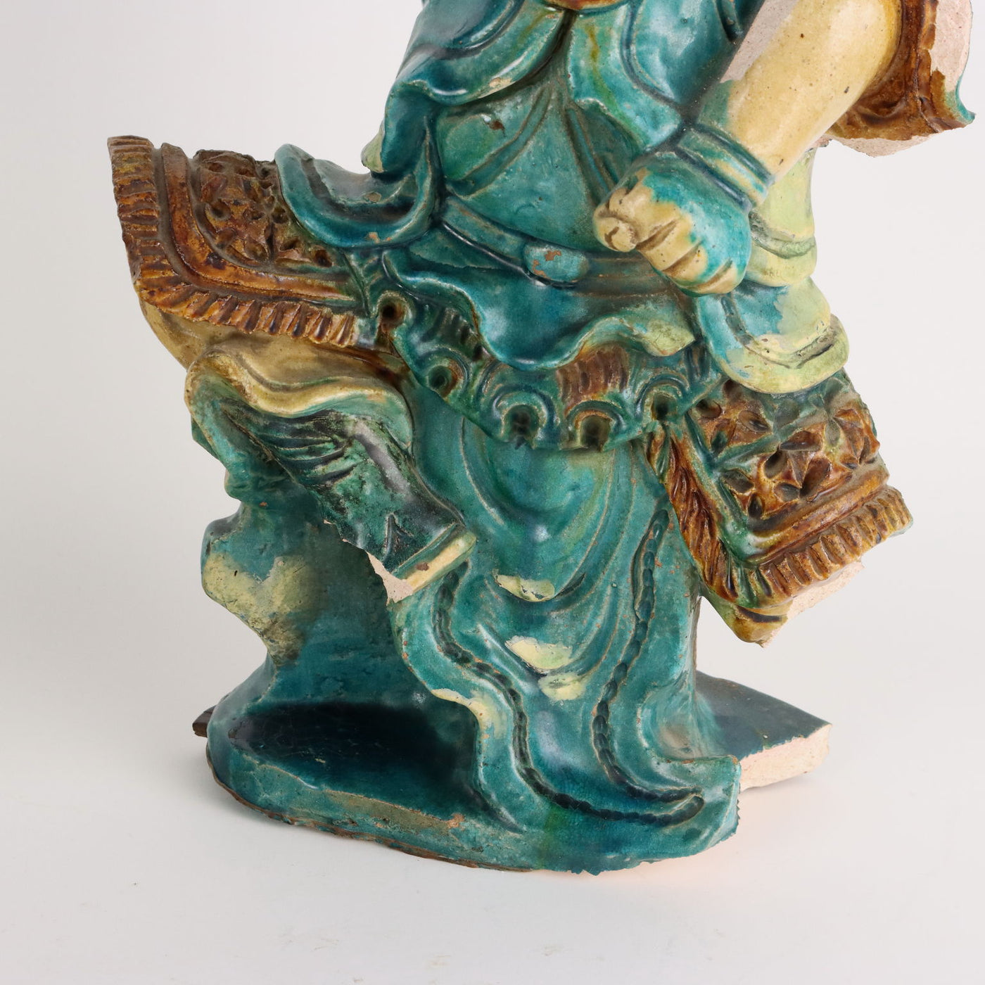 Two richly modeled stoneware warrior figures painted with Sancai enamels. collector's articles, ancient objects, porcelain, ceramics.