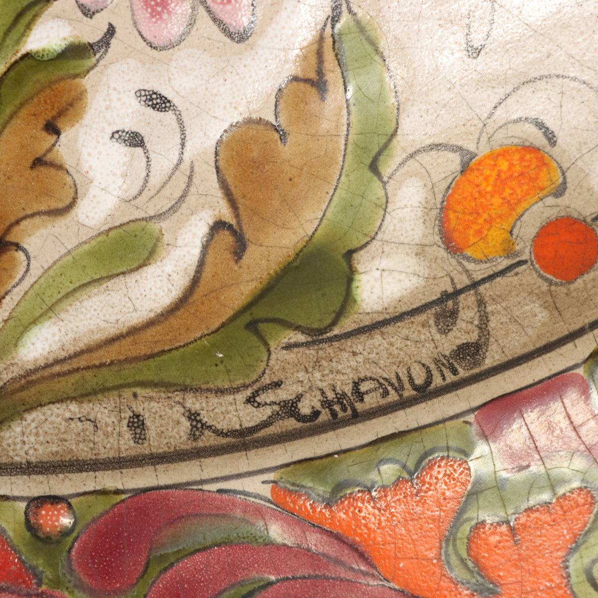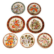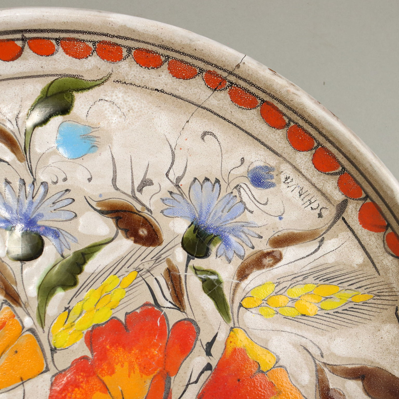 Group of seven ceramic parade plates decorated with polychrome enamels with fruit and flowers. Author's signature in the cavetto and on the reverse. collector's articles, ancient objects, porcelain, ceramics.