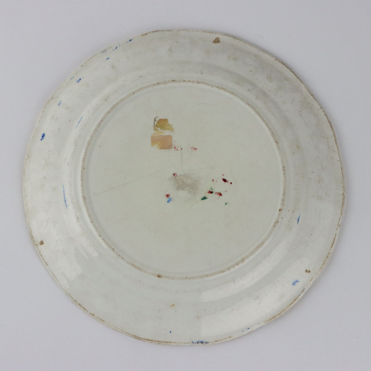 Ceramic plate, with polychrome flower in the hollow and rim decorated in blue. collector's articles, ancient objects, porcelain, ceramics.