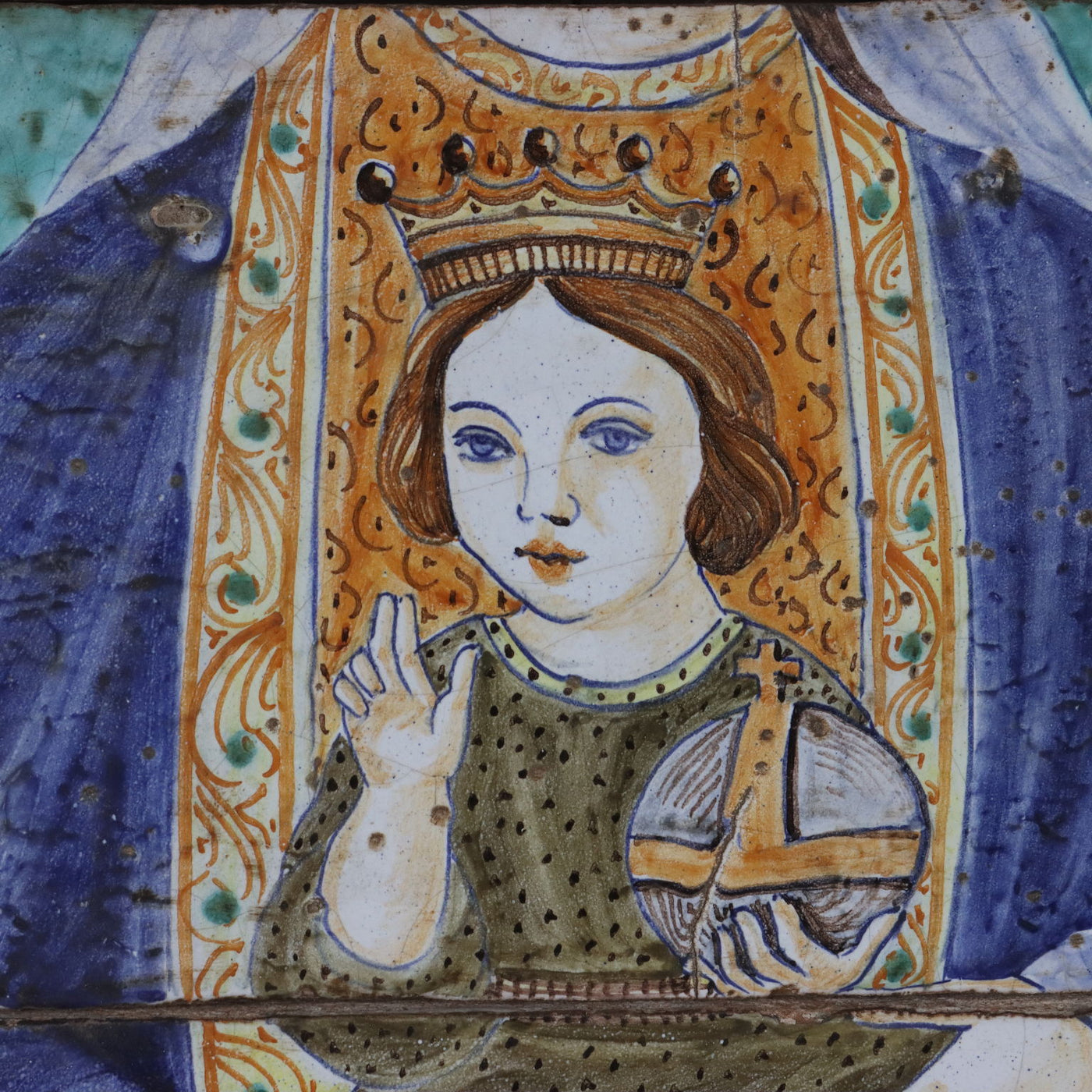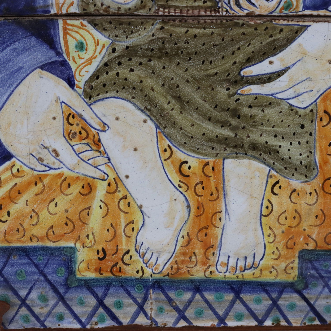 Antique Painting Majolica Wood Religious Subject Italy XX Century