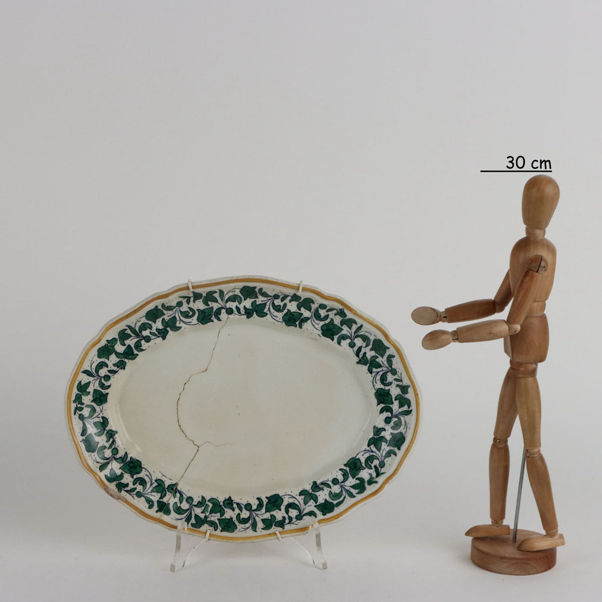 Oval ceramic plate with ivy decoration on the rim of the plate. Shaped edge, ochre-colored profile. Richard ceramics factory. collector's articles, ancient objects, porcelain, ceramics.